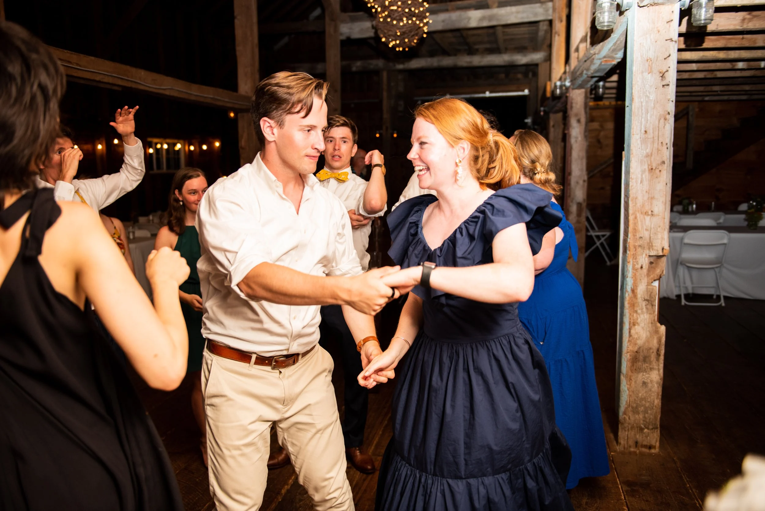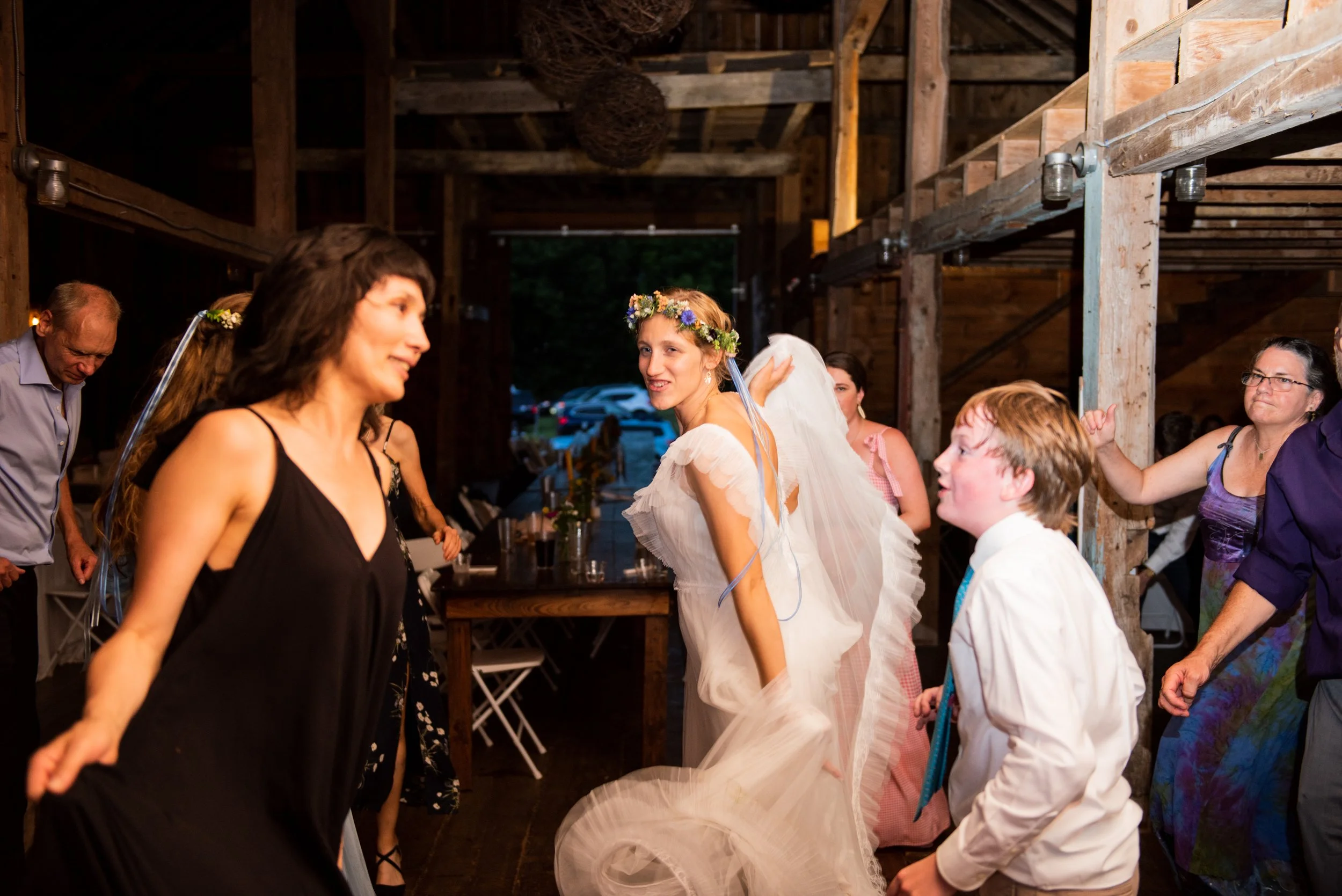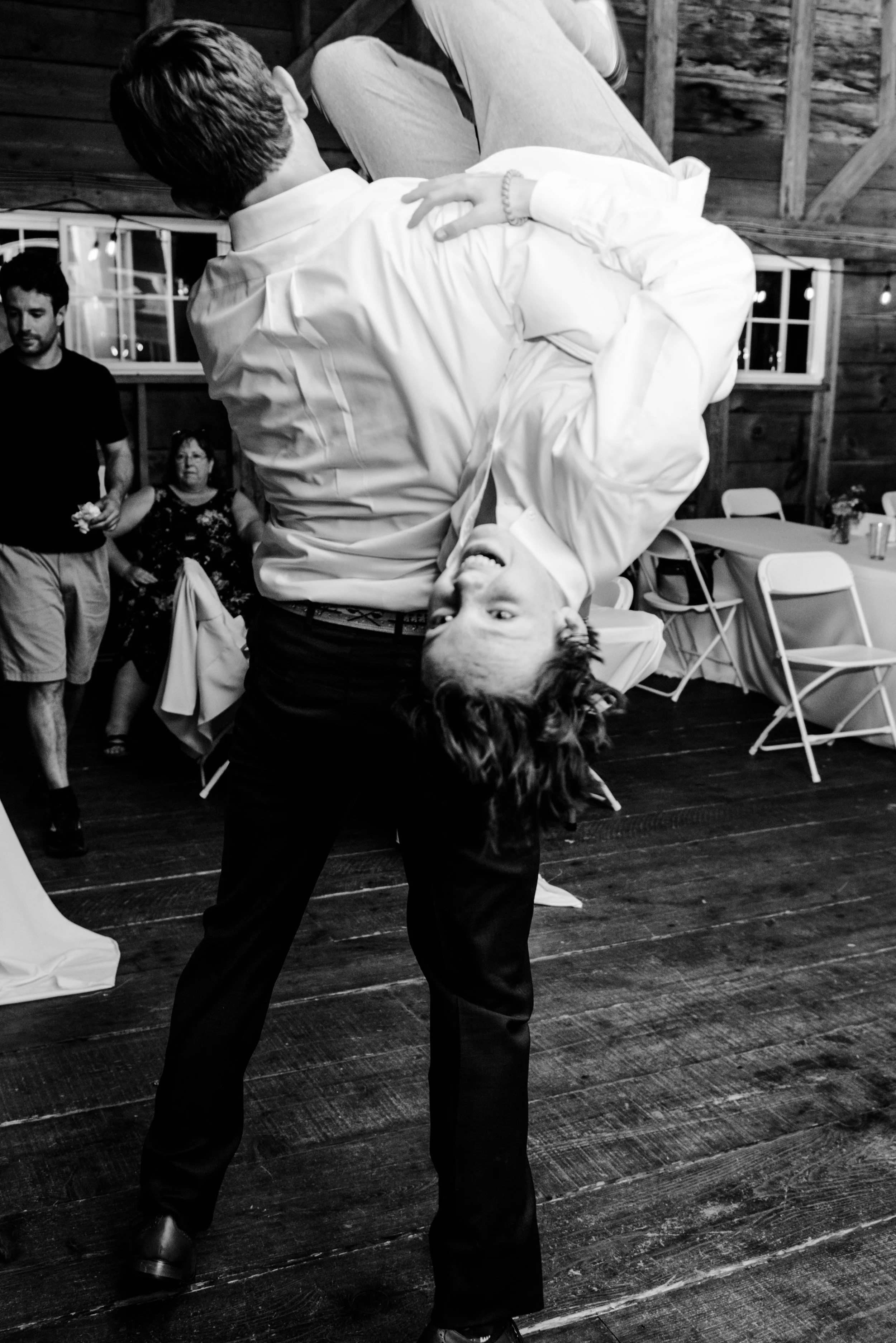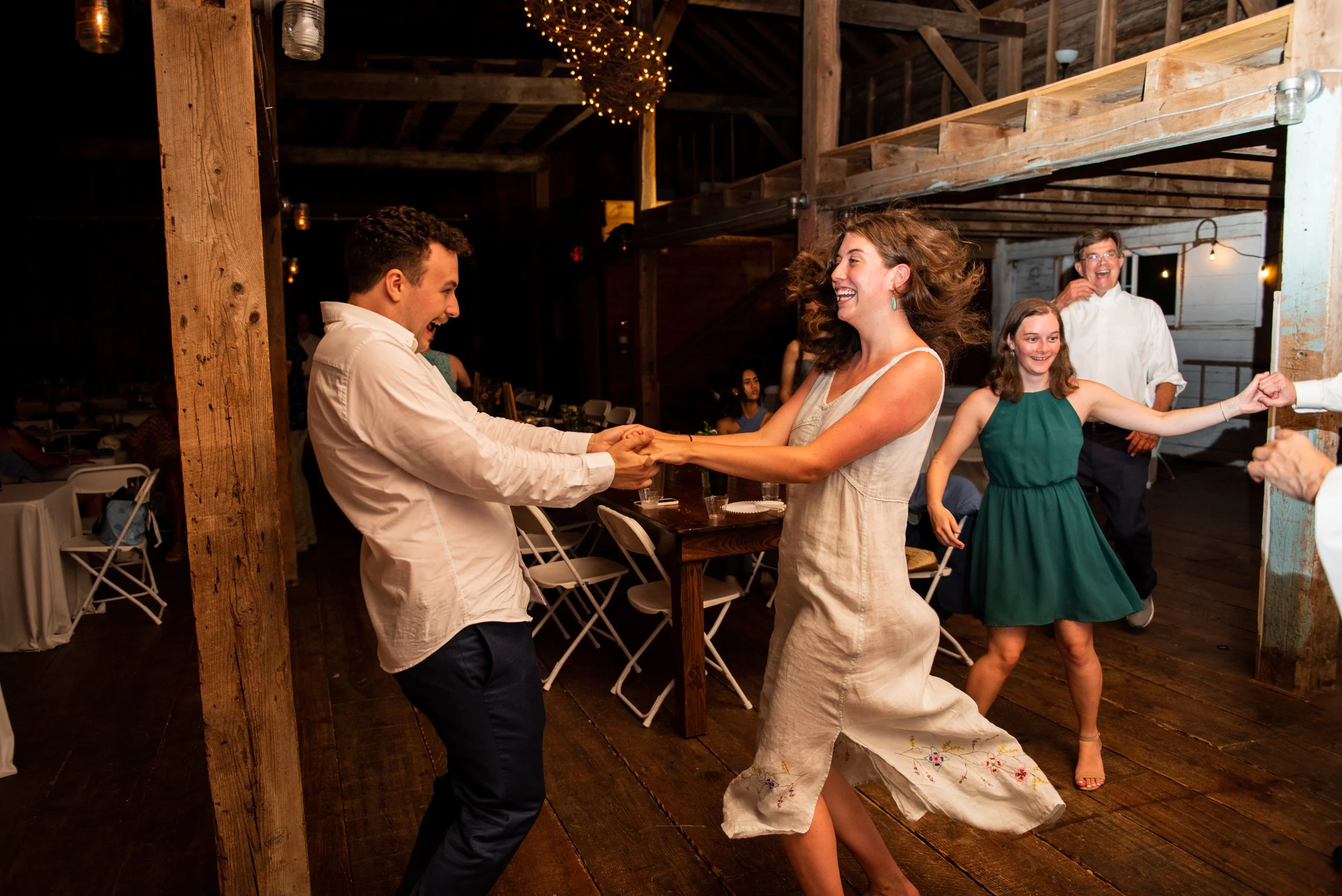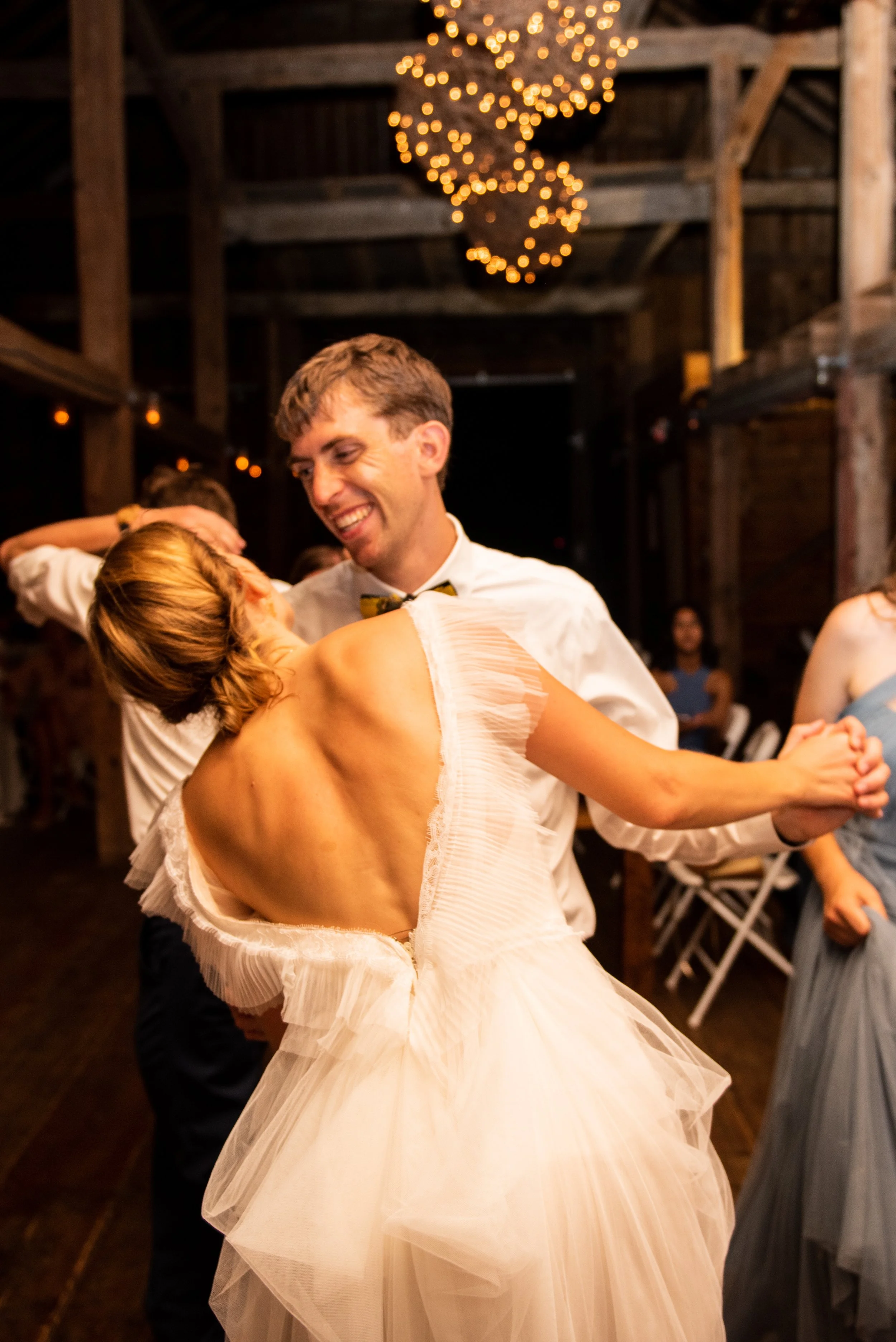 The dance floor was probably the part of the day that surprised me most. I had never seen such athletic dancing at a wedding in my life! Roger and his family members have this trick where they can pick each other up and do front flips. It was wild. Limbs were flying, smiles were abounding, and the party was hopping. DJ Dave kept the tunes flowing and the crowd just didn’t want to stop. As the last light of sunset faded from the barn’s roof, the fairy lights flowed from within and all you could hear was the cheering, laughing, and stomping. Congratulations to Lydia and Roger!
