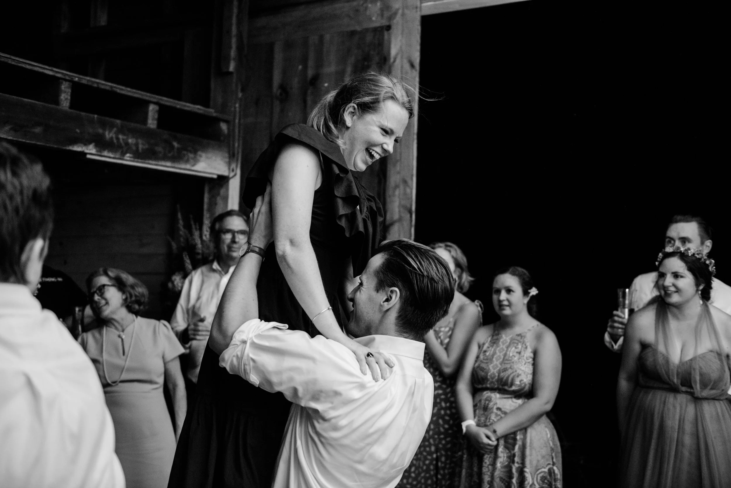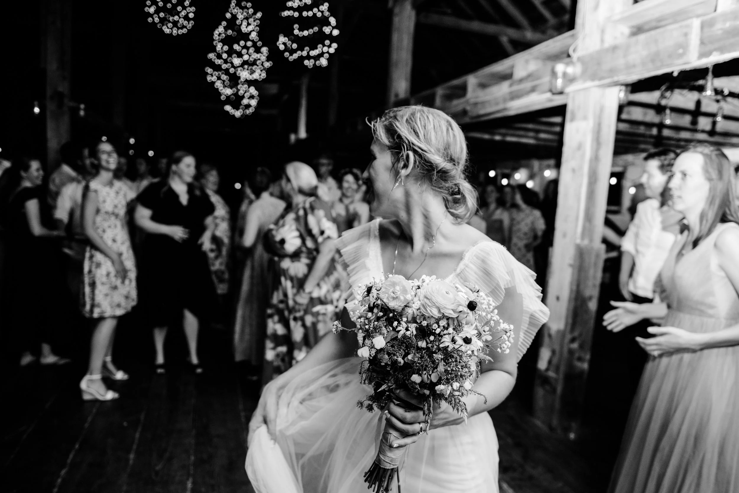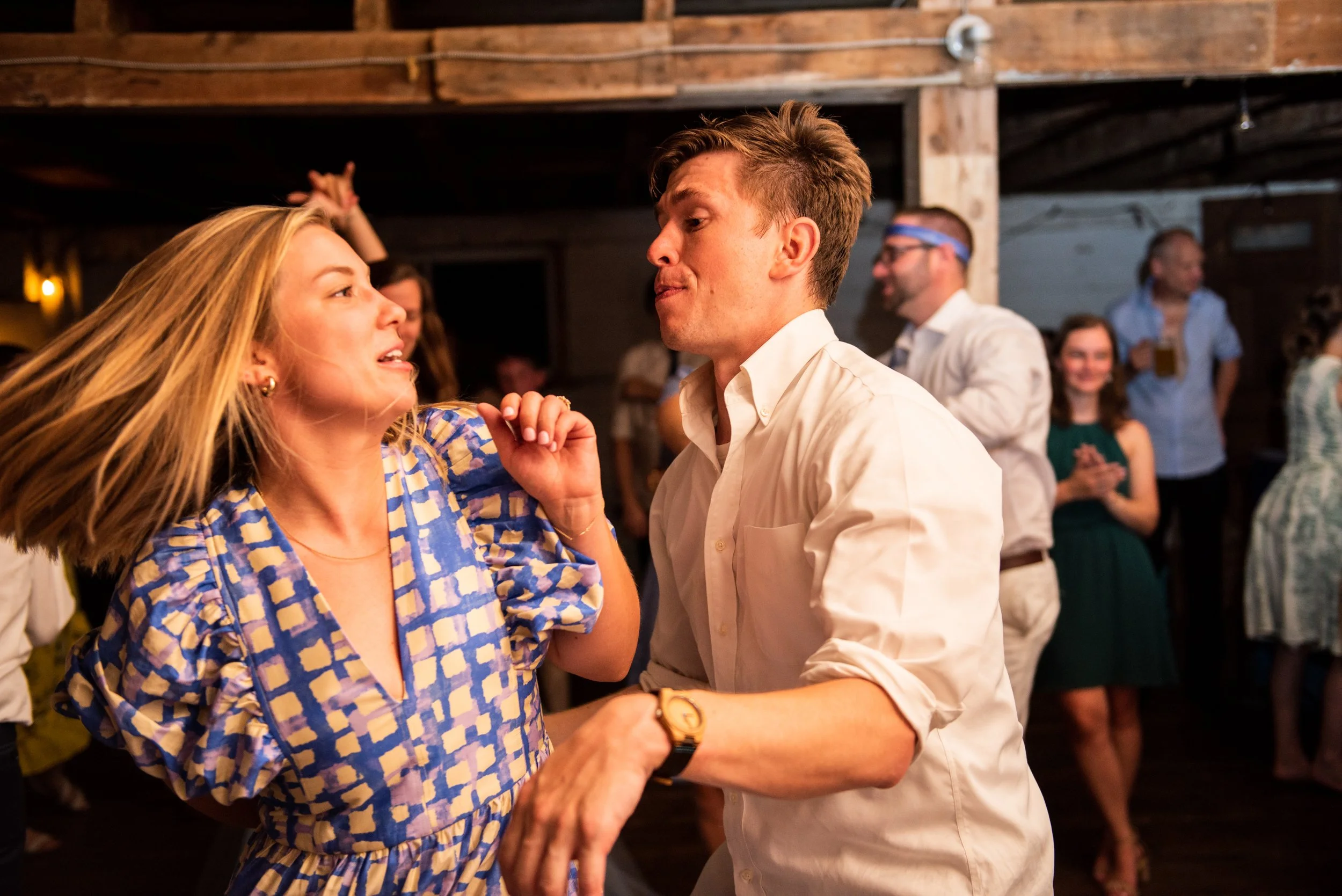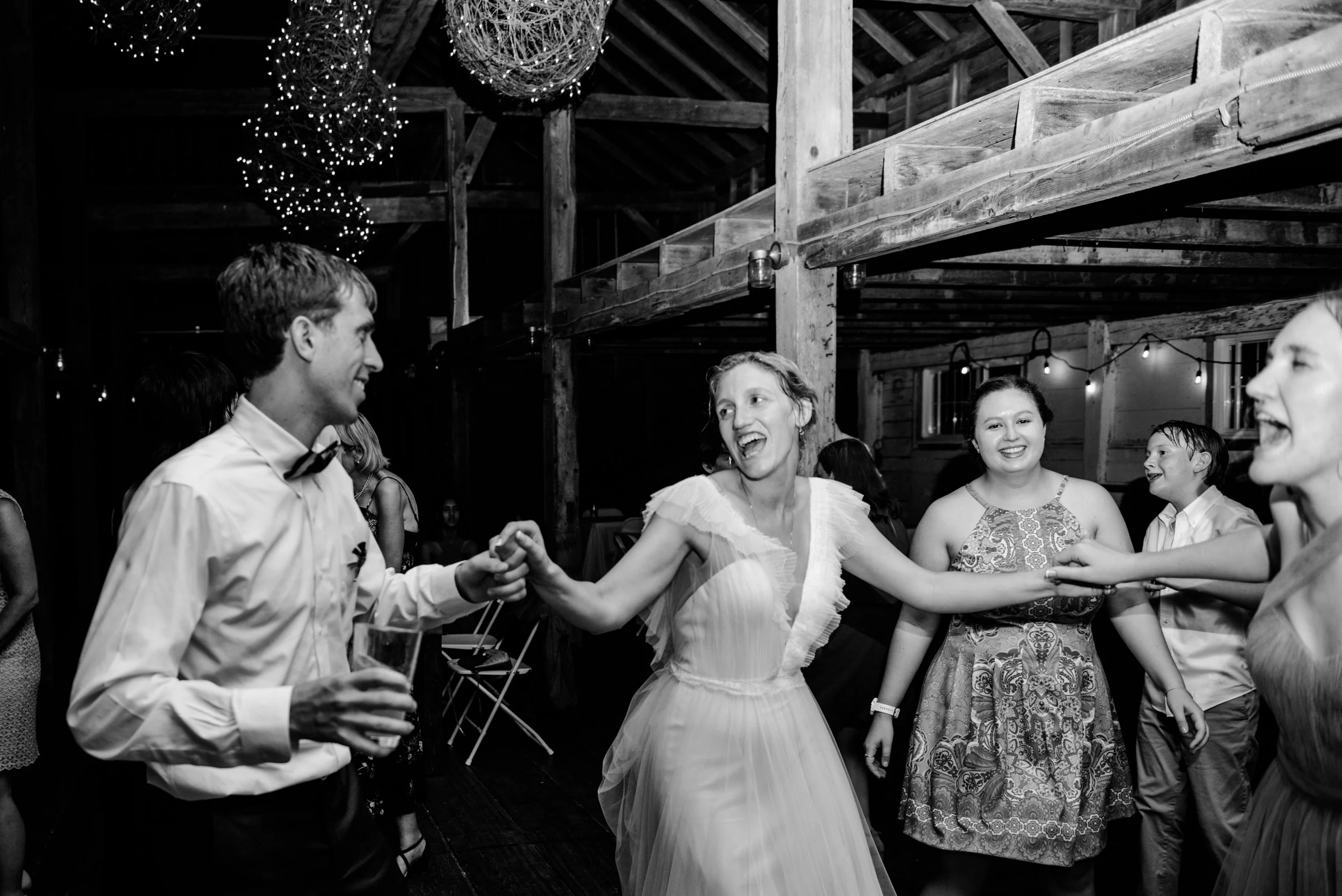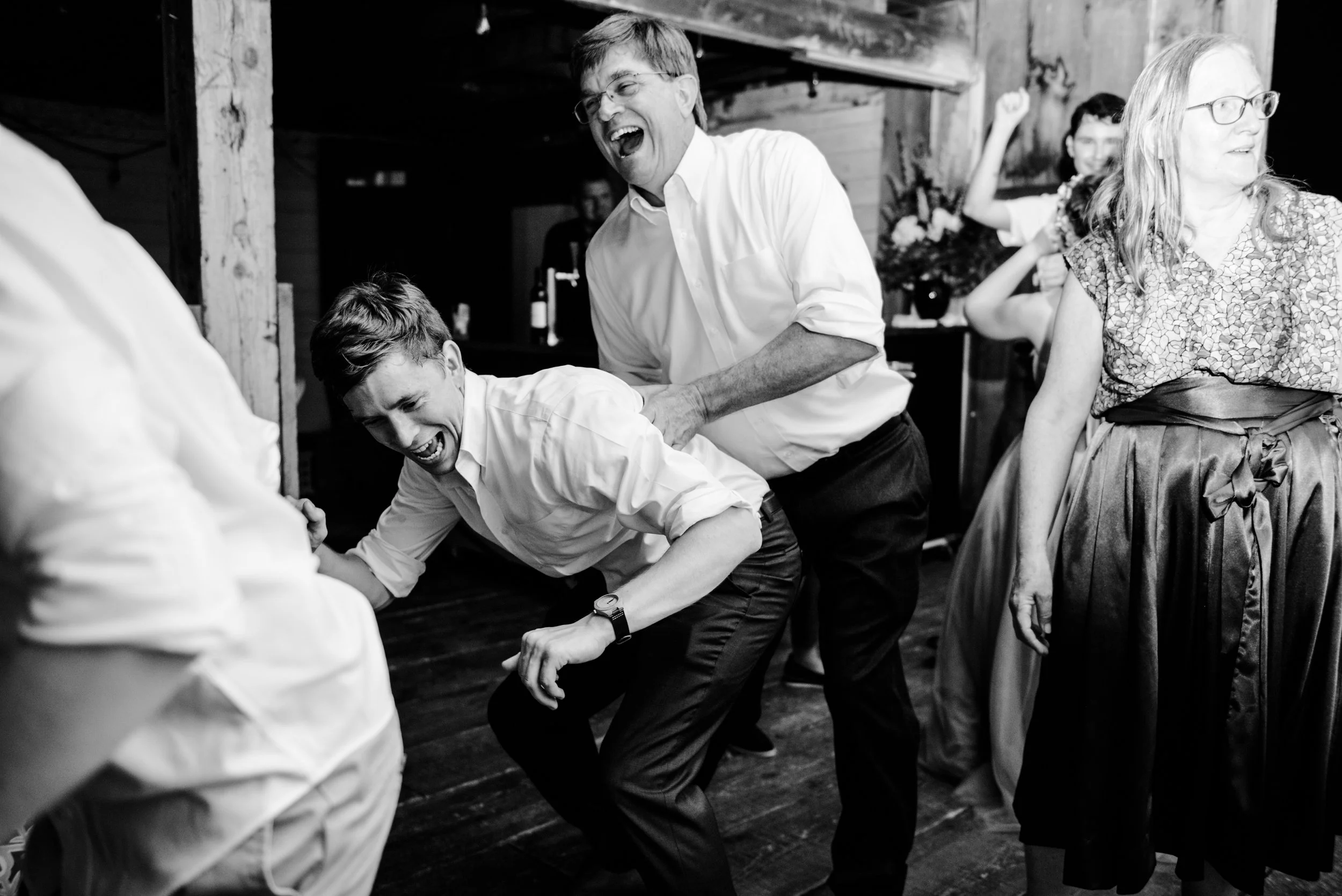 The dance floor was probably the part of the day that surprised me most. I had never seen such athletic dancing at a wedding in my life! Roger and his family members have this trick where they can pick each other up and do front flips. It was wild. Limbs were flying, smiles were abounding, and the party was hopping. DJ Dave kept the tunes flowing and the crowd just didn’t want to stop. As the last light of sunset faded from the barn’s roof, the fairy lights flowed from within and all you could hear was the cheering, laughing, and stomping. Congratulations to Lydia and Roger!