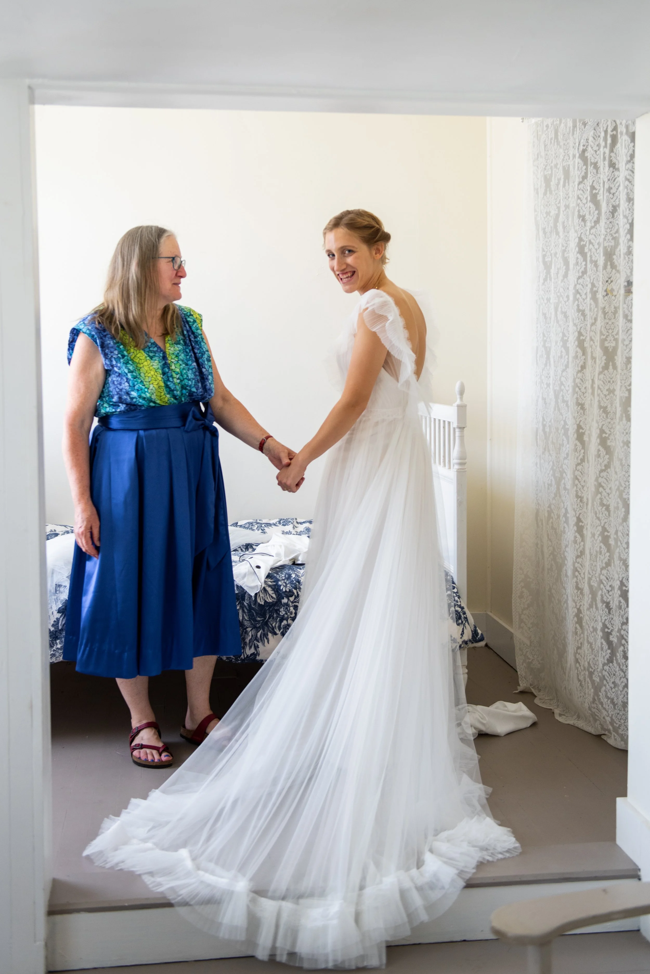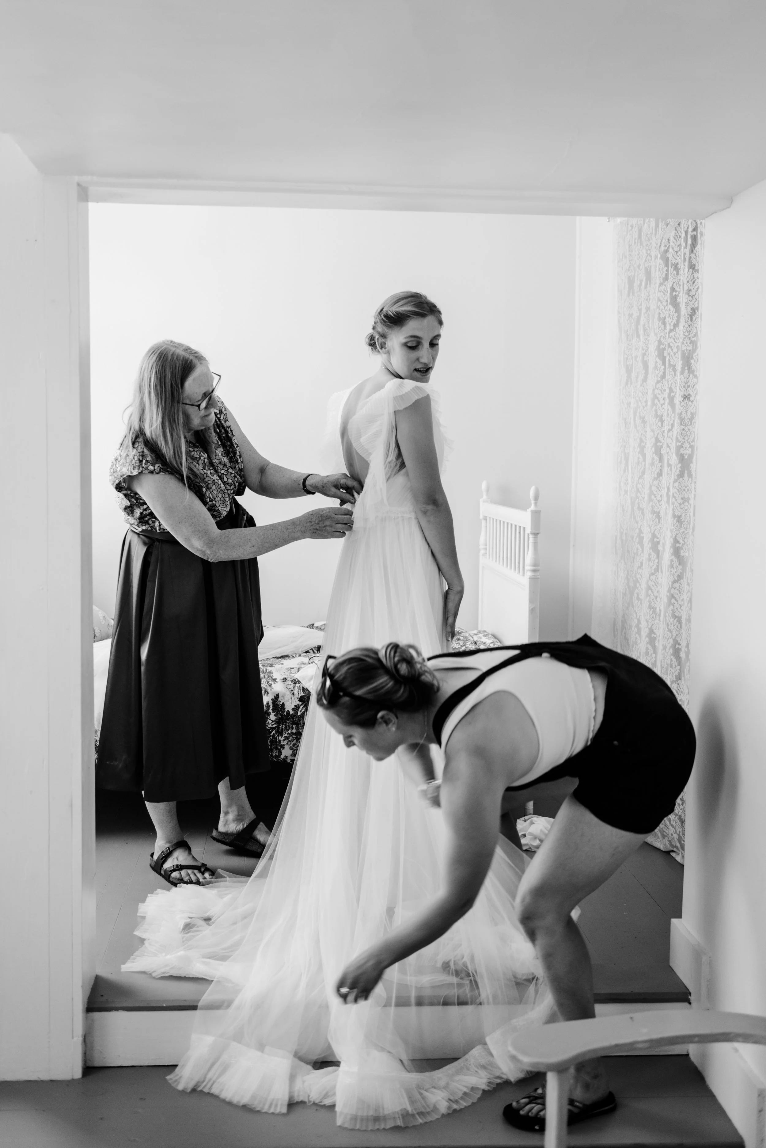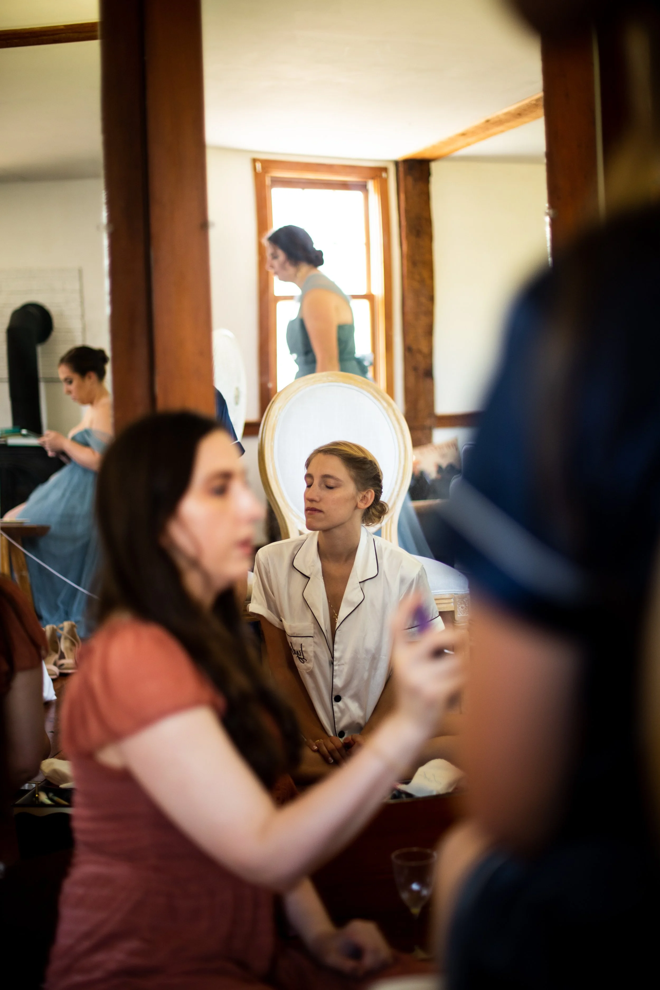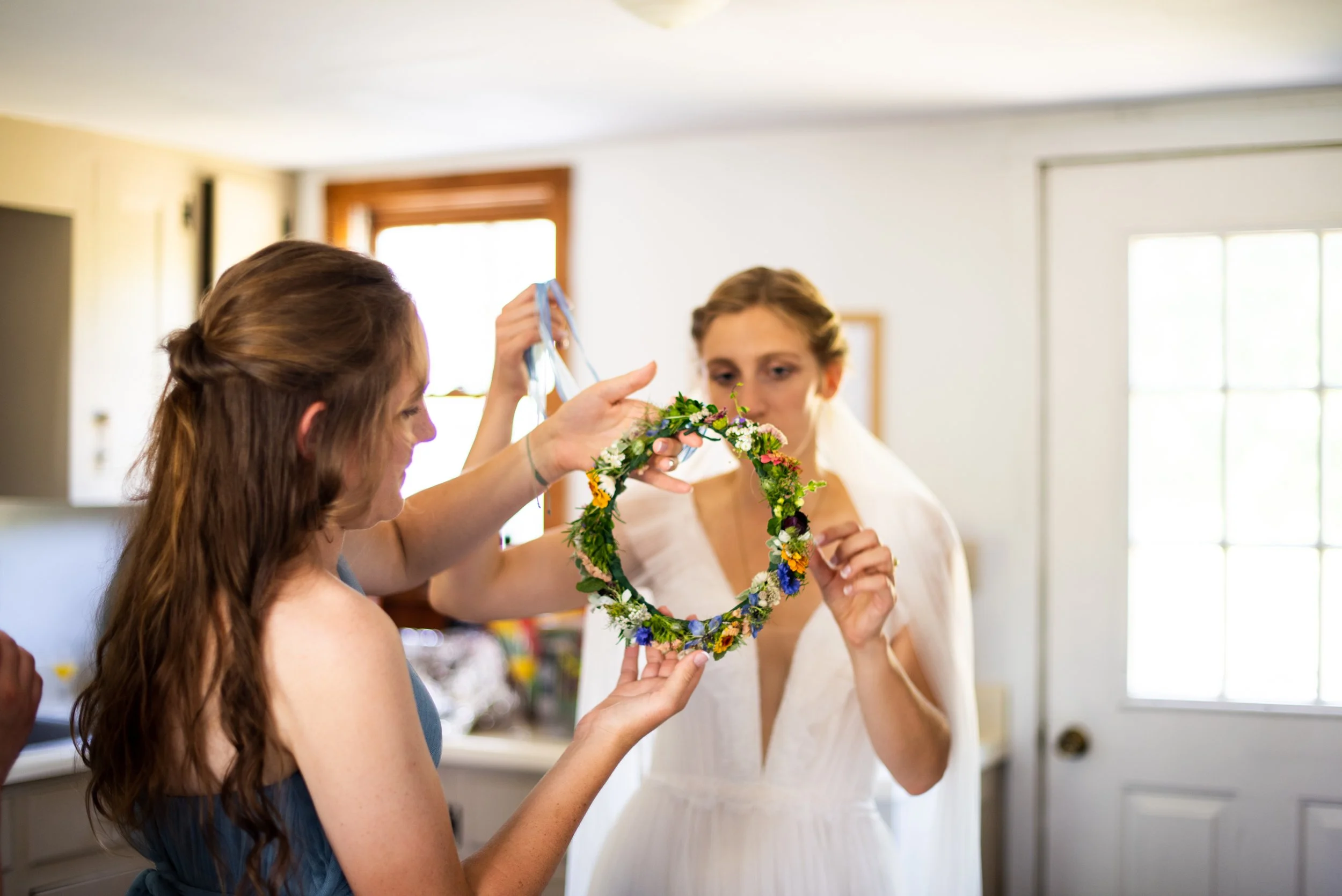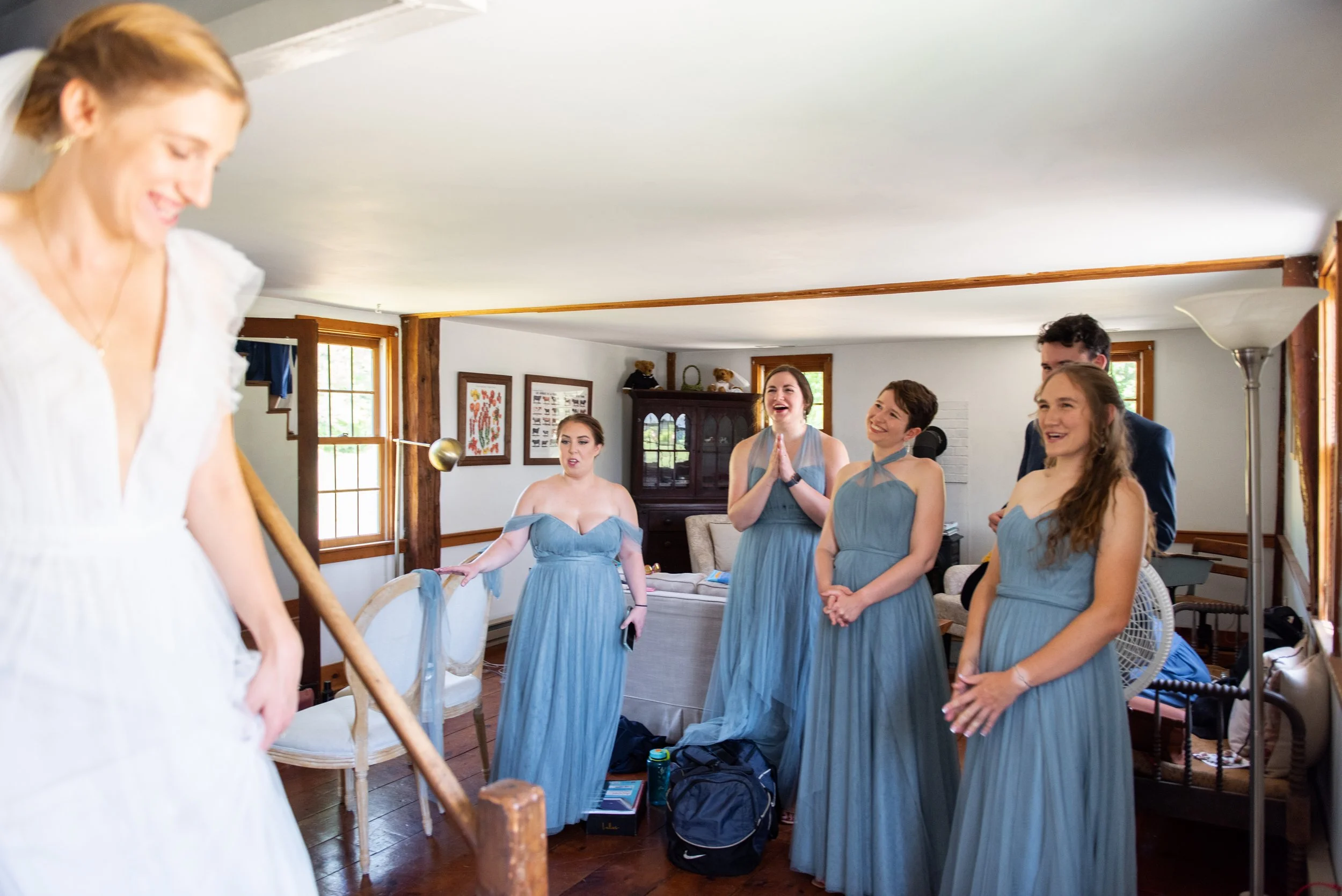 Lydia prepared with her bridal party at Shady Lane Farm in the sweet little house on the property. She had some really sweet moments with her mother and sister which, I later realized, was only the first hint of the deep closeness between them that I’d be capturing all day. I absolutely loved the flower crown as a finishing touch on the bride!