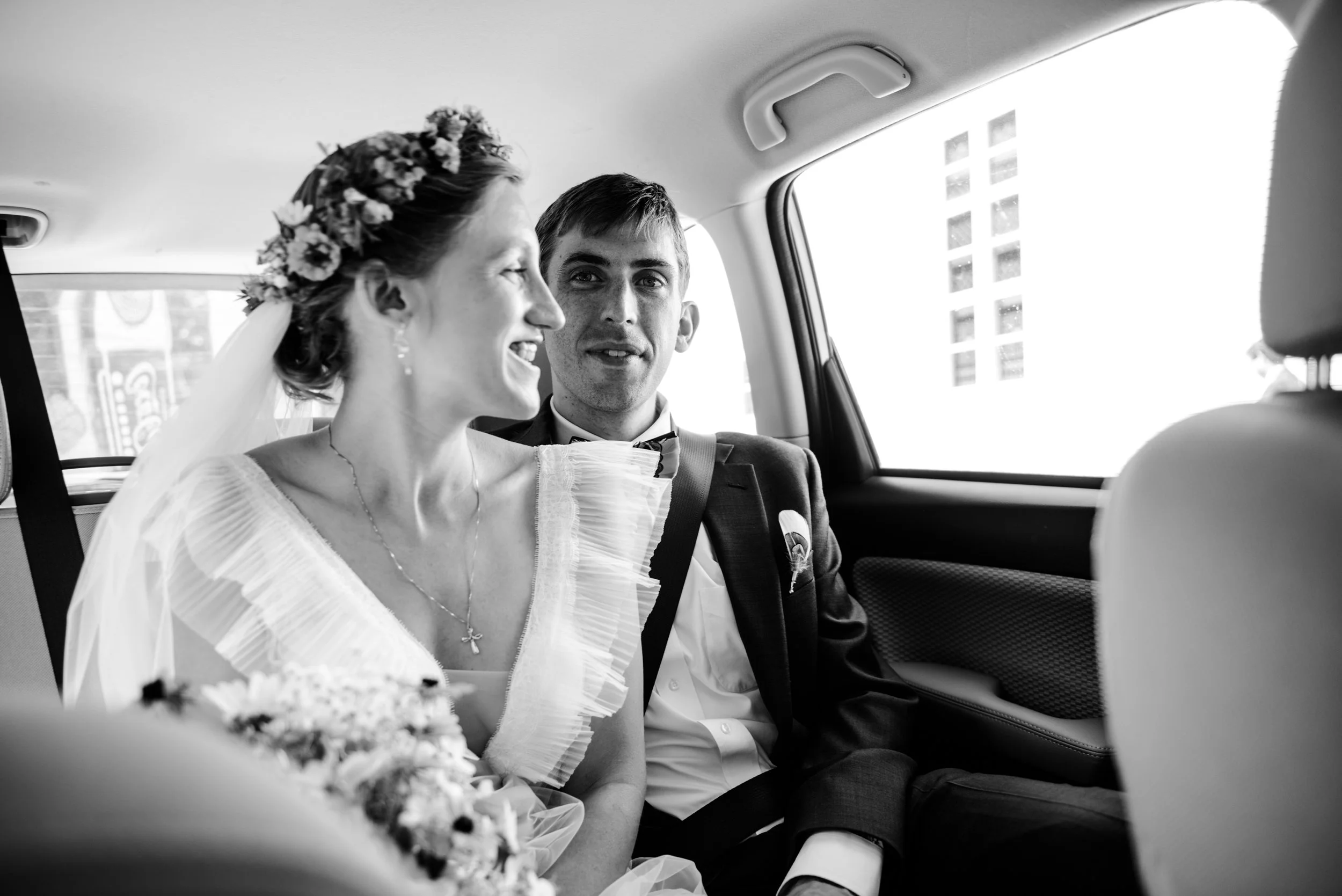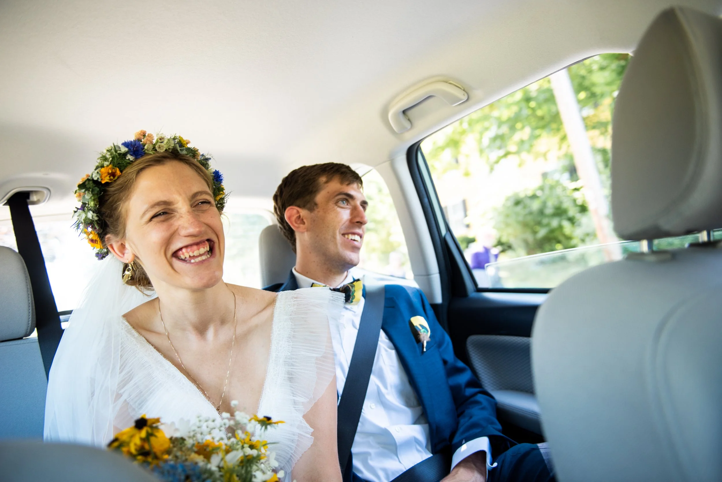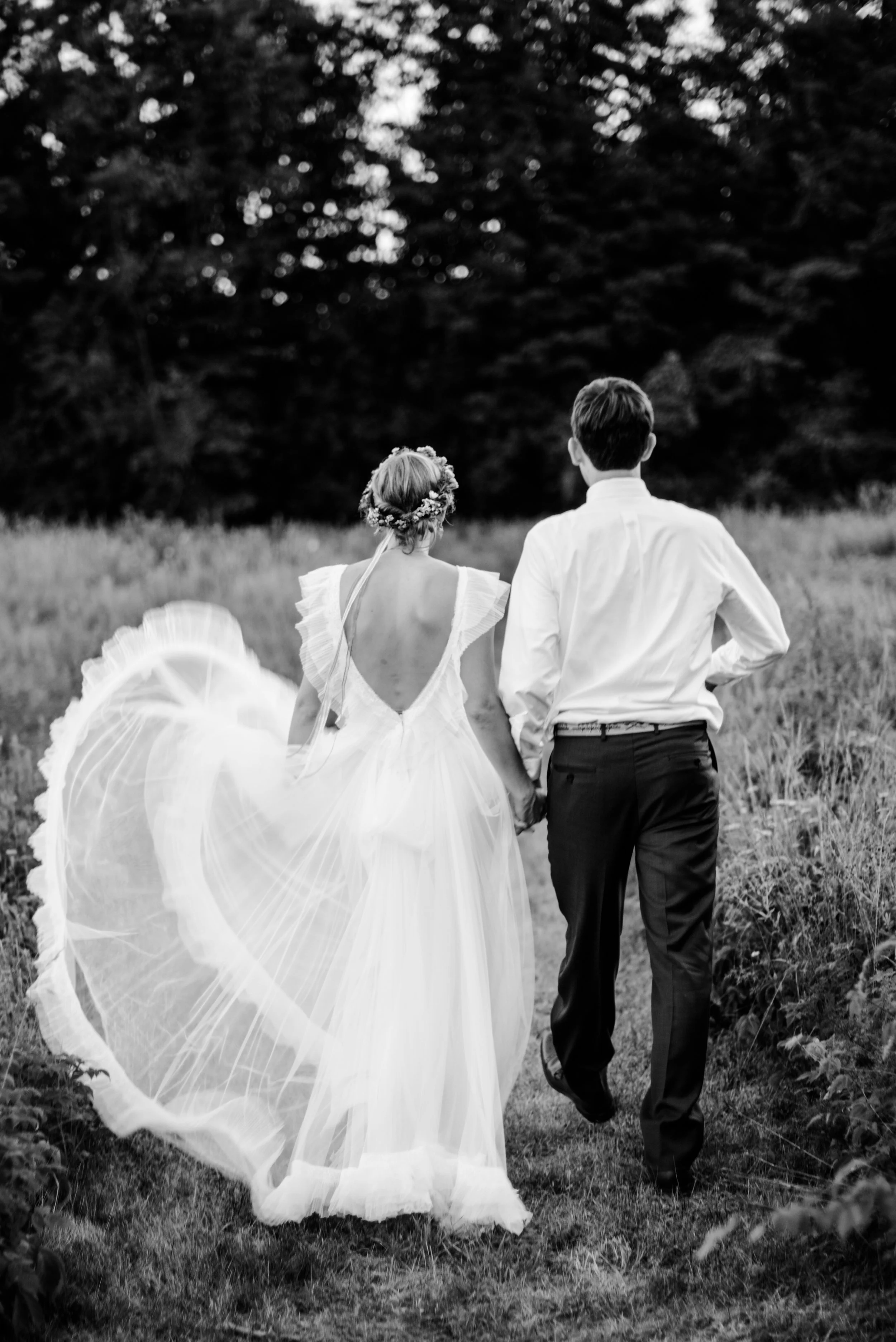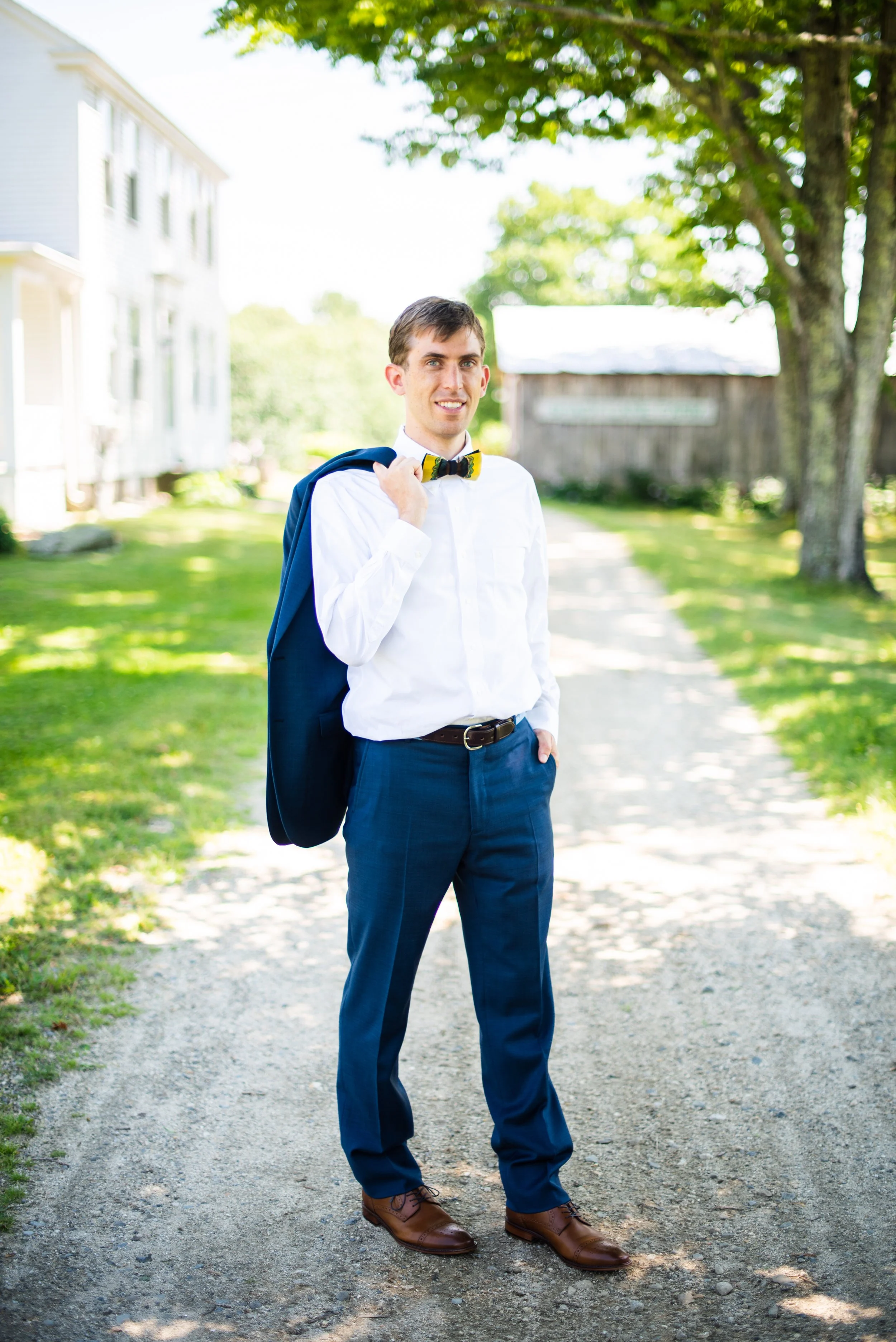 Once ready, the bridal party strode down Main Street in town for their brudsmarsch, a traditional Scandinavian bridal approach to the ceremony. There was music, there were bubbles, and there were many cars stopped in traffic to wave us along in congratulations. Then, Lydia and Roger tied the knot at the very sweet First Congregational Church of New Gloucester.