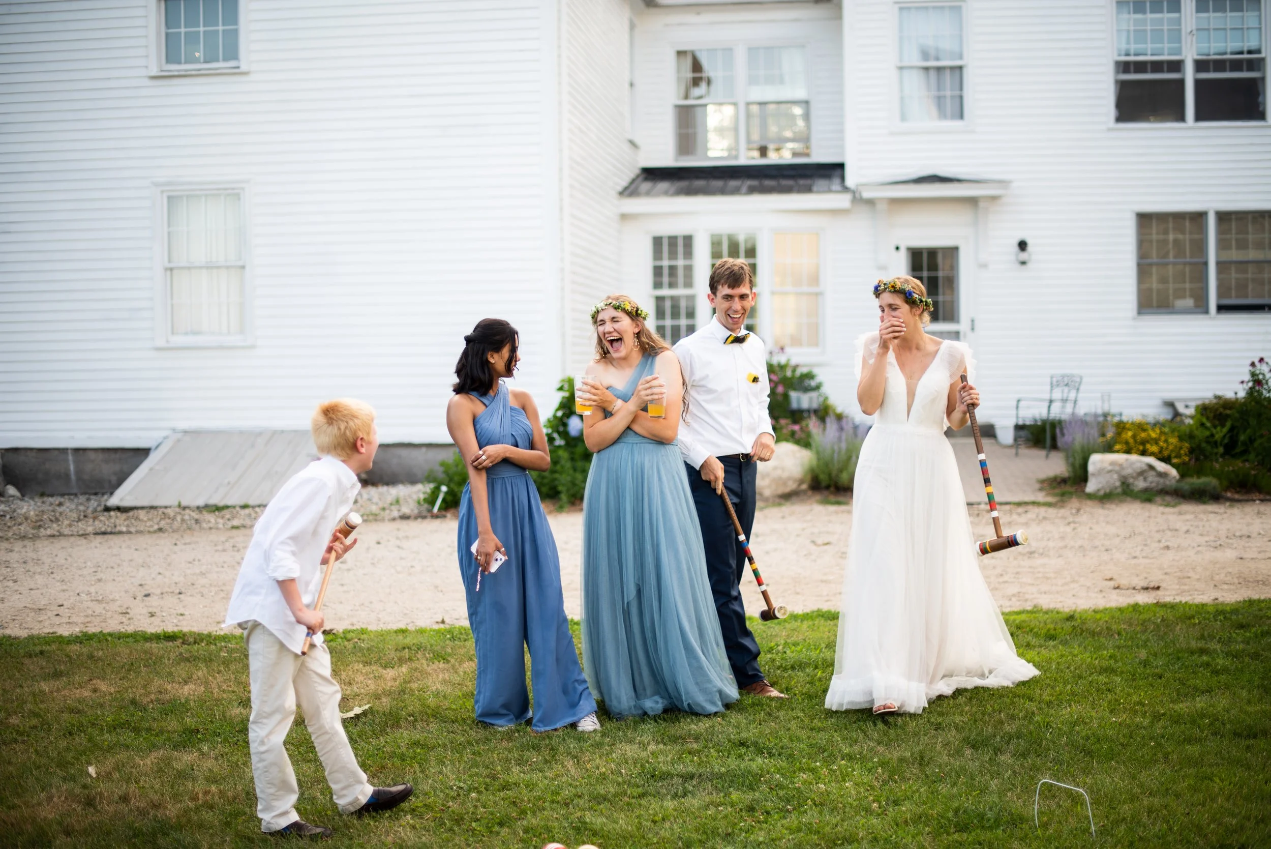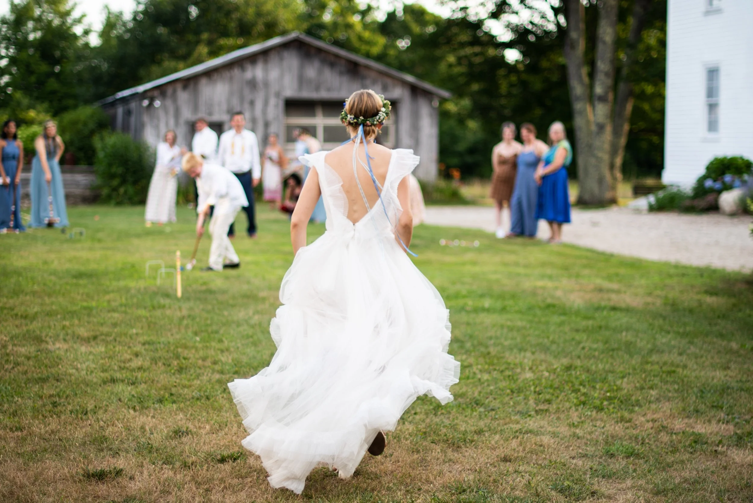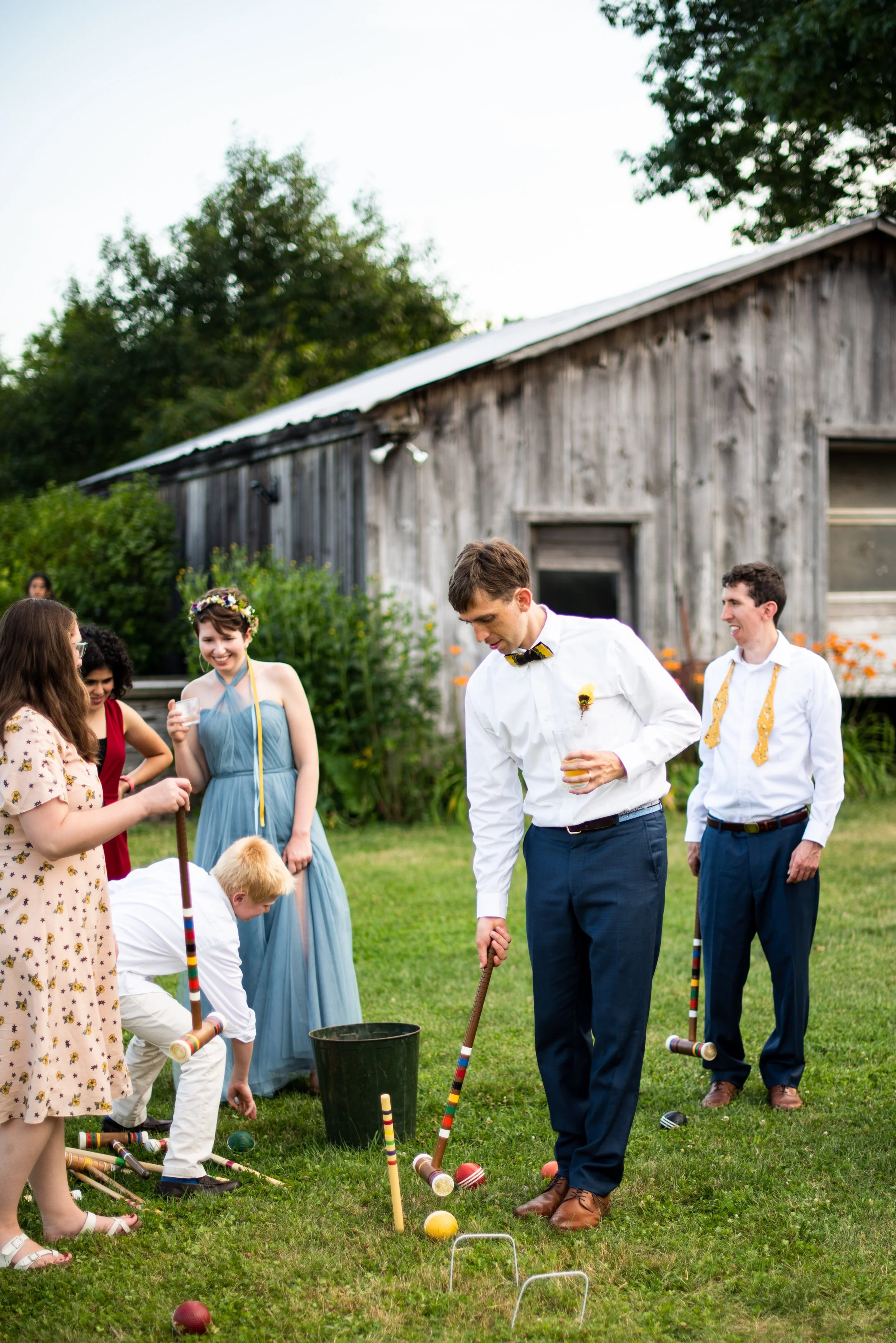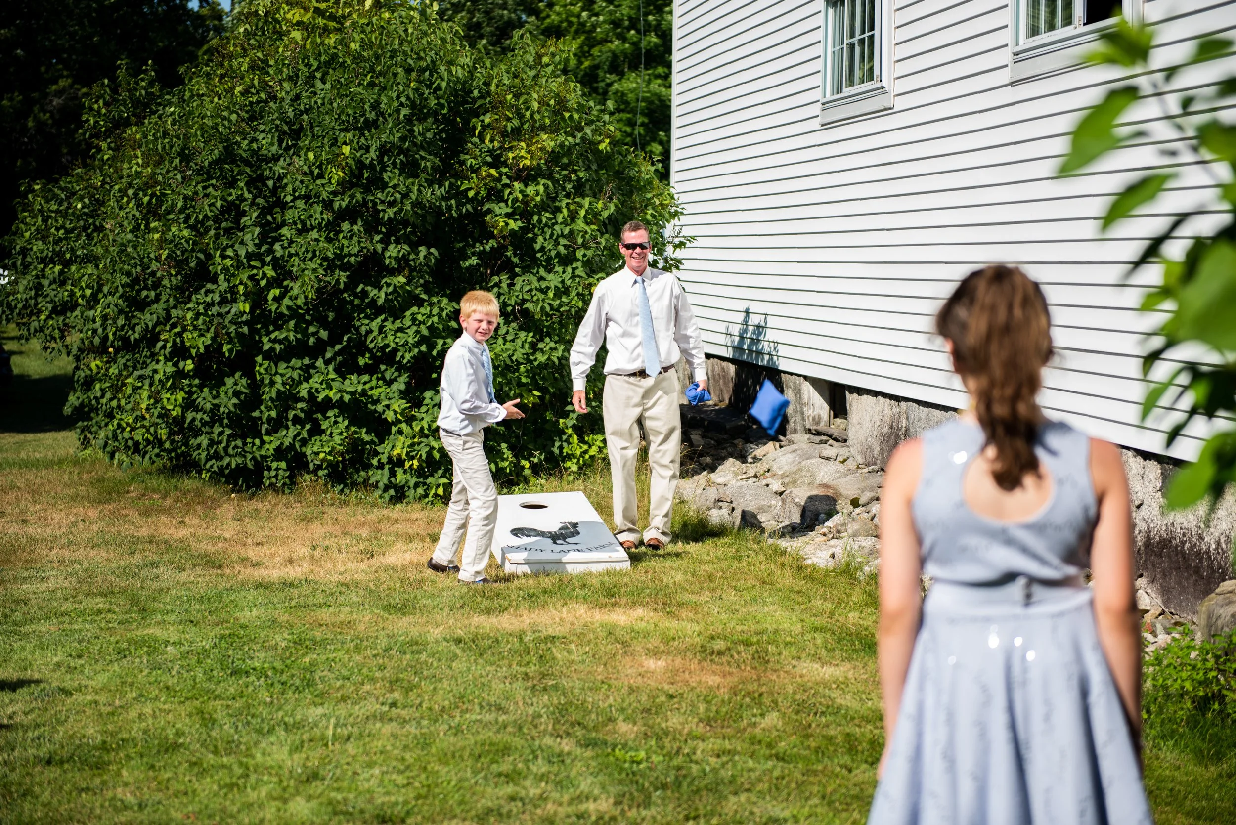 After the ceremony, we took family portraits and couples portraits and finally released the bride and groom to join their guests at the delightful cocktail hour party which had no shortage of games. There was giant Jenga, corn hole, and croquet. So. Much. Croquet! It became Roger and Lydia’s pandemic sport, so the whole family joined in at the Shady Lane Farm lawn. Dinner included fresh salads and even whole lobsters from Fosters Clambakes and Catering - delish! Speeches, first dances, and cake followed afterwards.