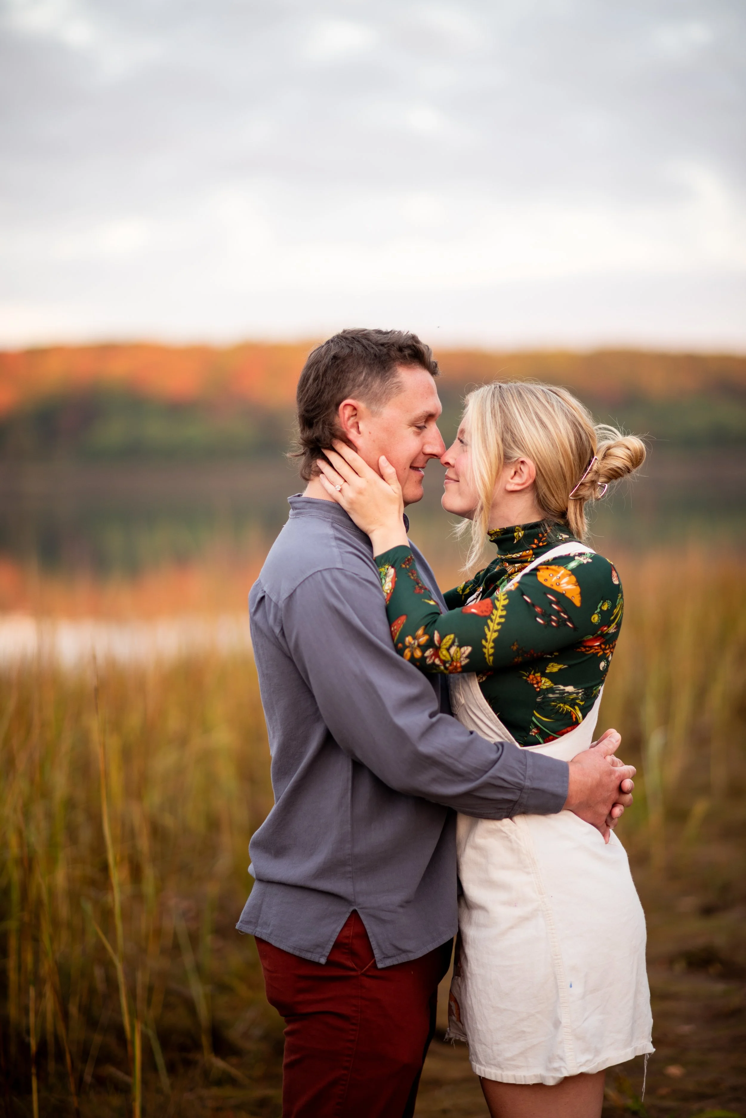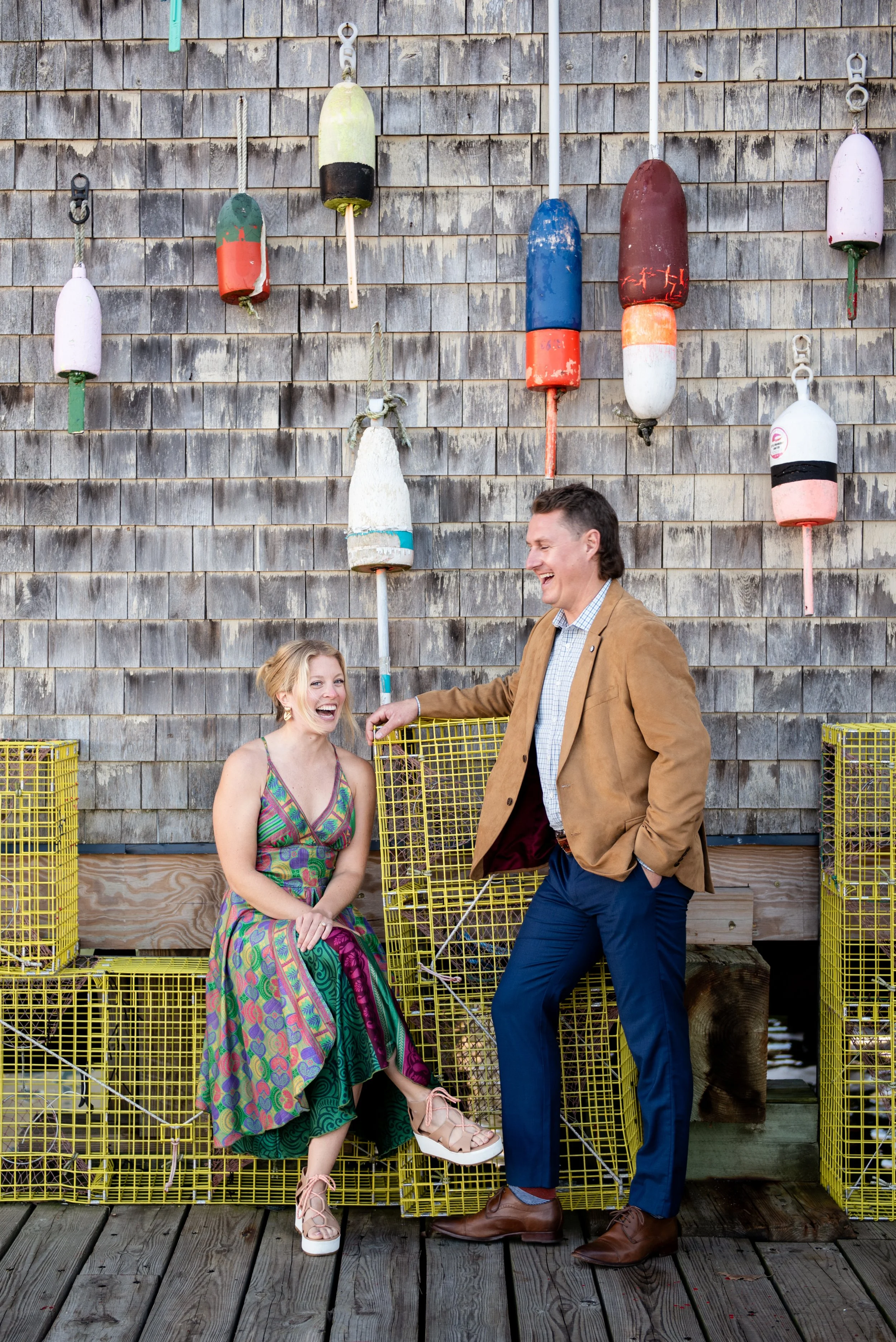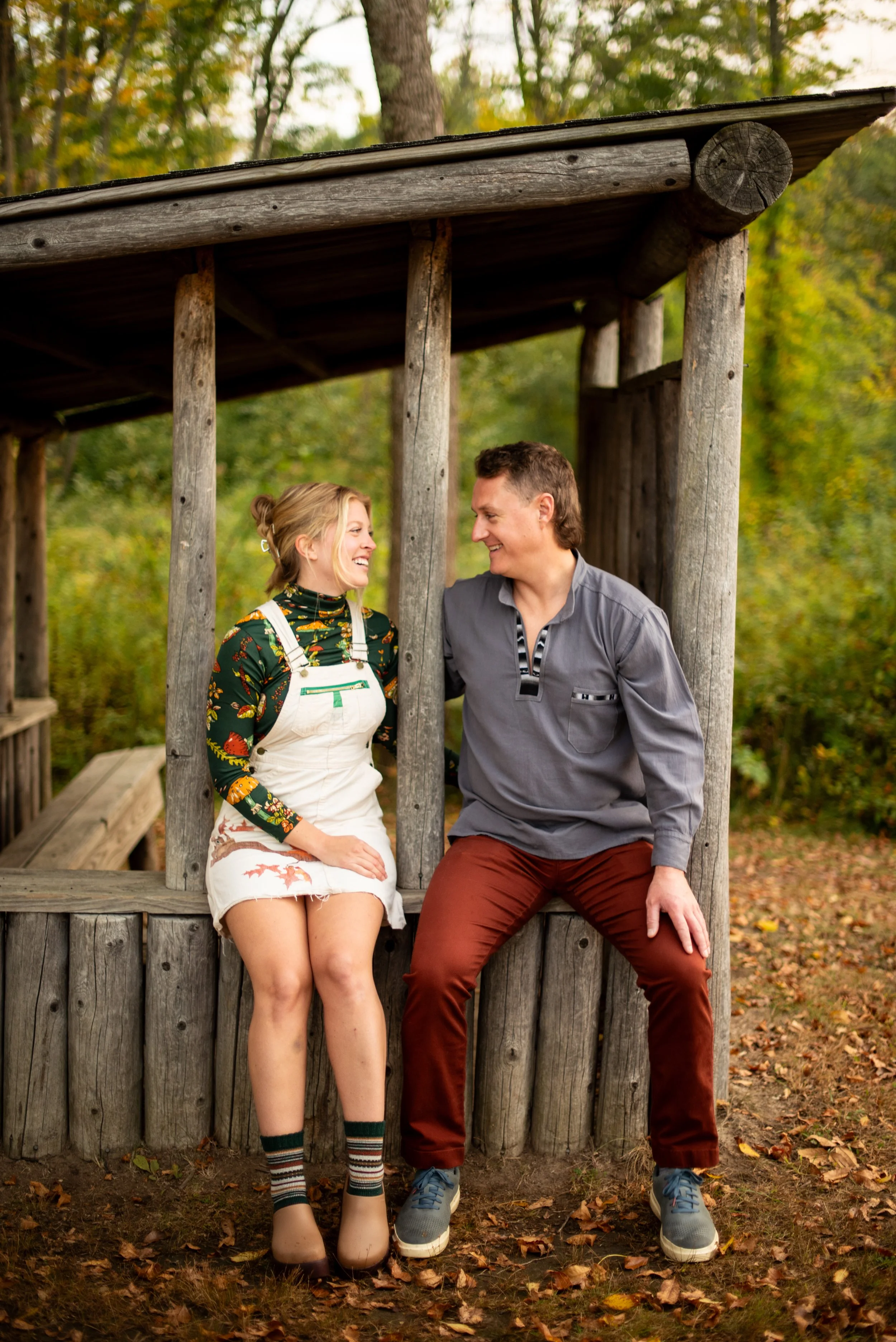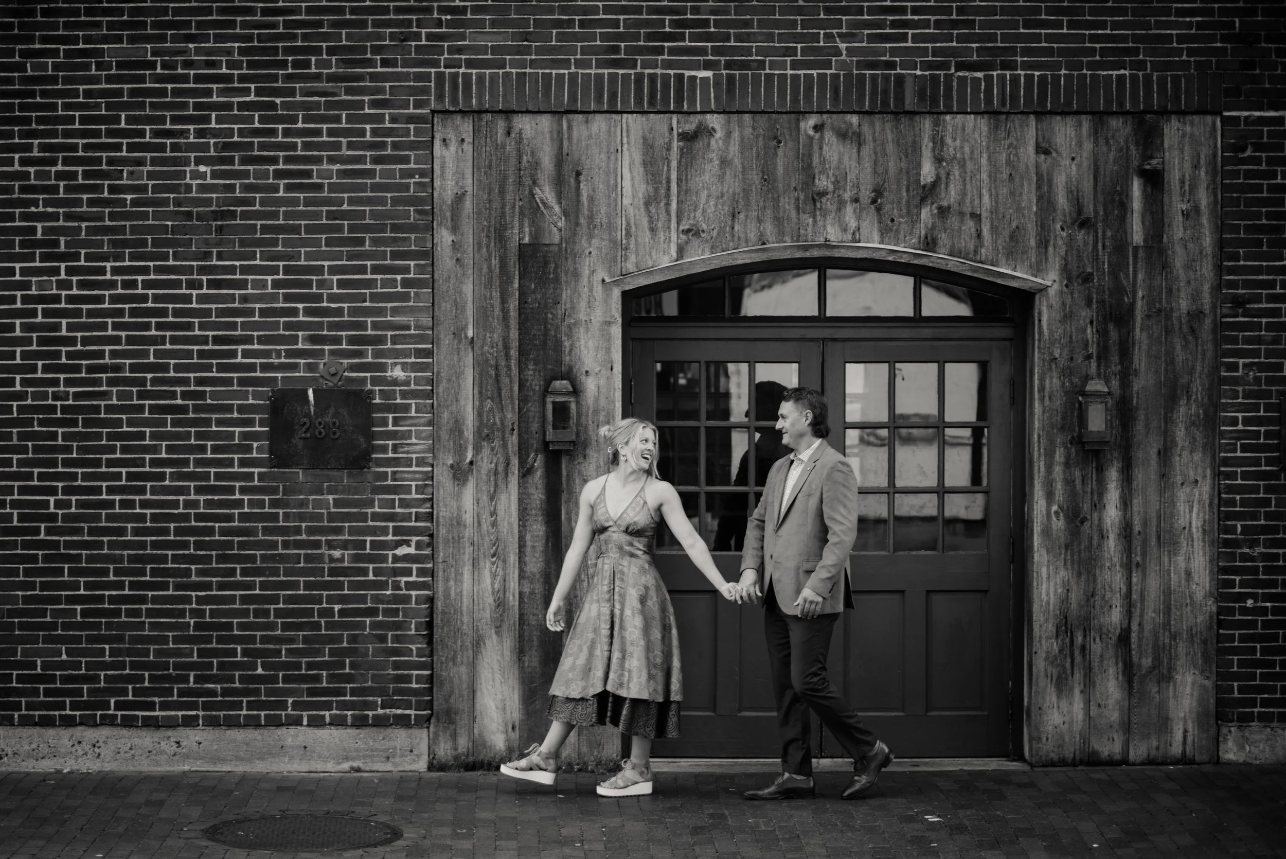 First and foremost, Mary is my oldest best friend and that made this engagement shoot special from the very start. Secondly, Mary and Sam are bold. They were dedicated to our sunrise timing for the photoshoot even though that meant meeting at 6AM on a Sunday. And, they were even willing to traipse out into the muddy, squishy marsh at the Maine Audubon at Gilsland Farm (the Audubon was a fitting start to the shoot for these avid birders). Third, they’re quirky. For the first half of the shoot, they rocked memorable tops with Mary in a mushroom print turtleneck and Sam in a notch-collar shirt. Fourth, they’re silly as heck. Some of their photo ideas included jumping together with deadpan faces, pretending to be predator and prey in a chase, pretending to spot each other in the wild. At one point when we were in downtown Portland (where the couple loves to explore), Mary unexpectedly but purposefully bit Sam’s finger and we all lost it laughing.