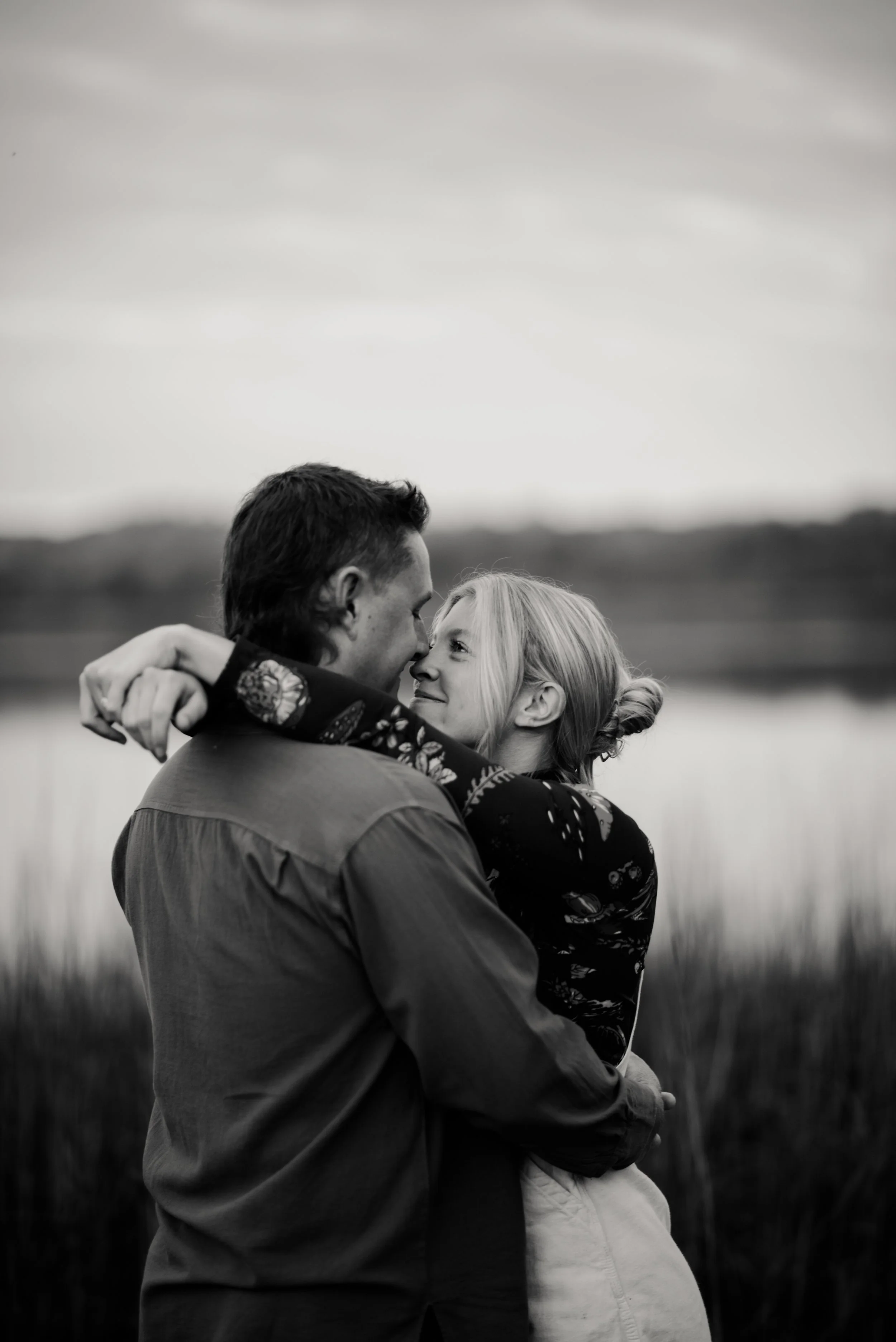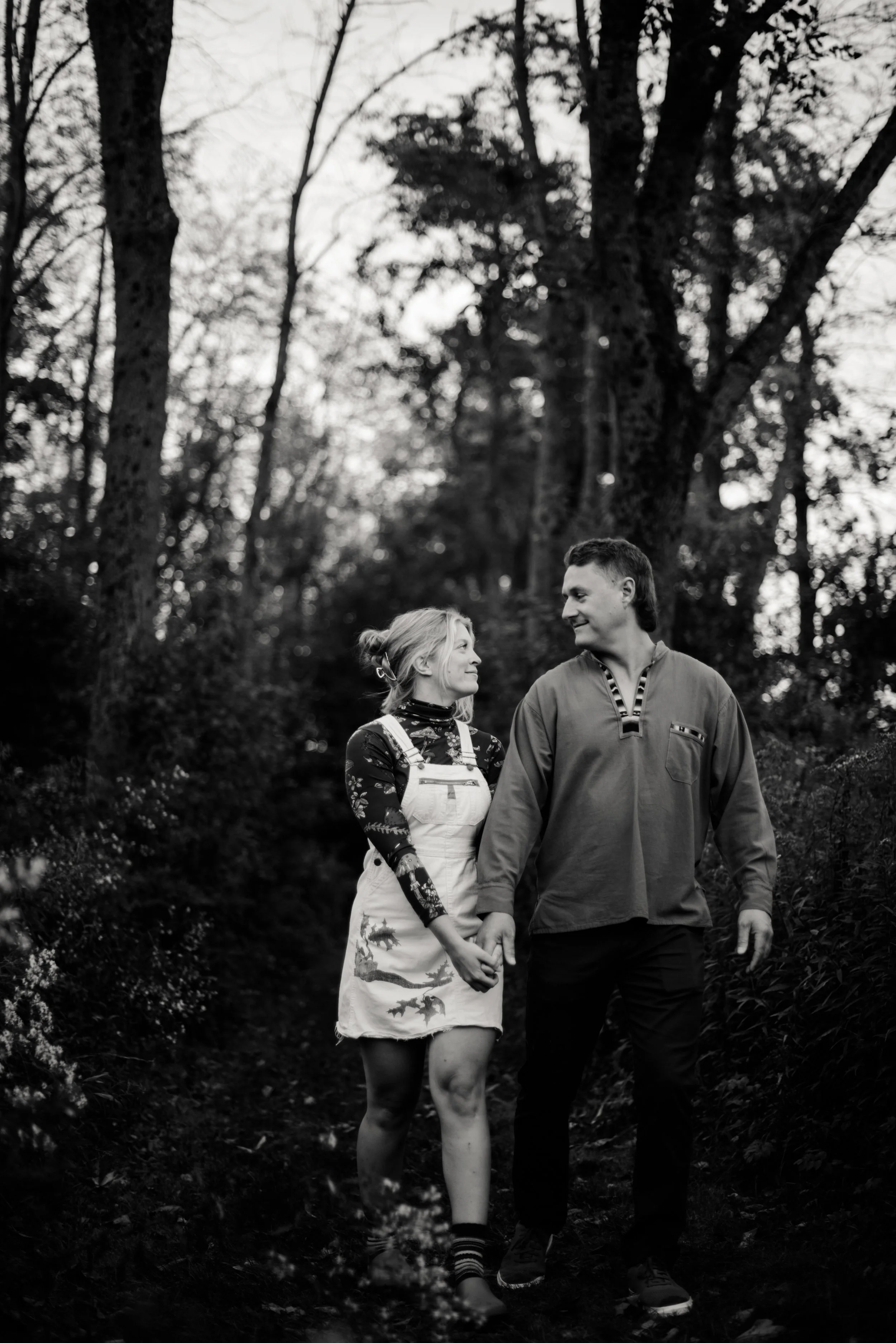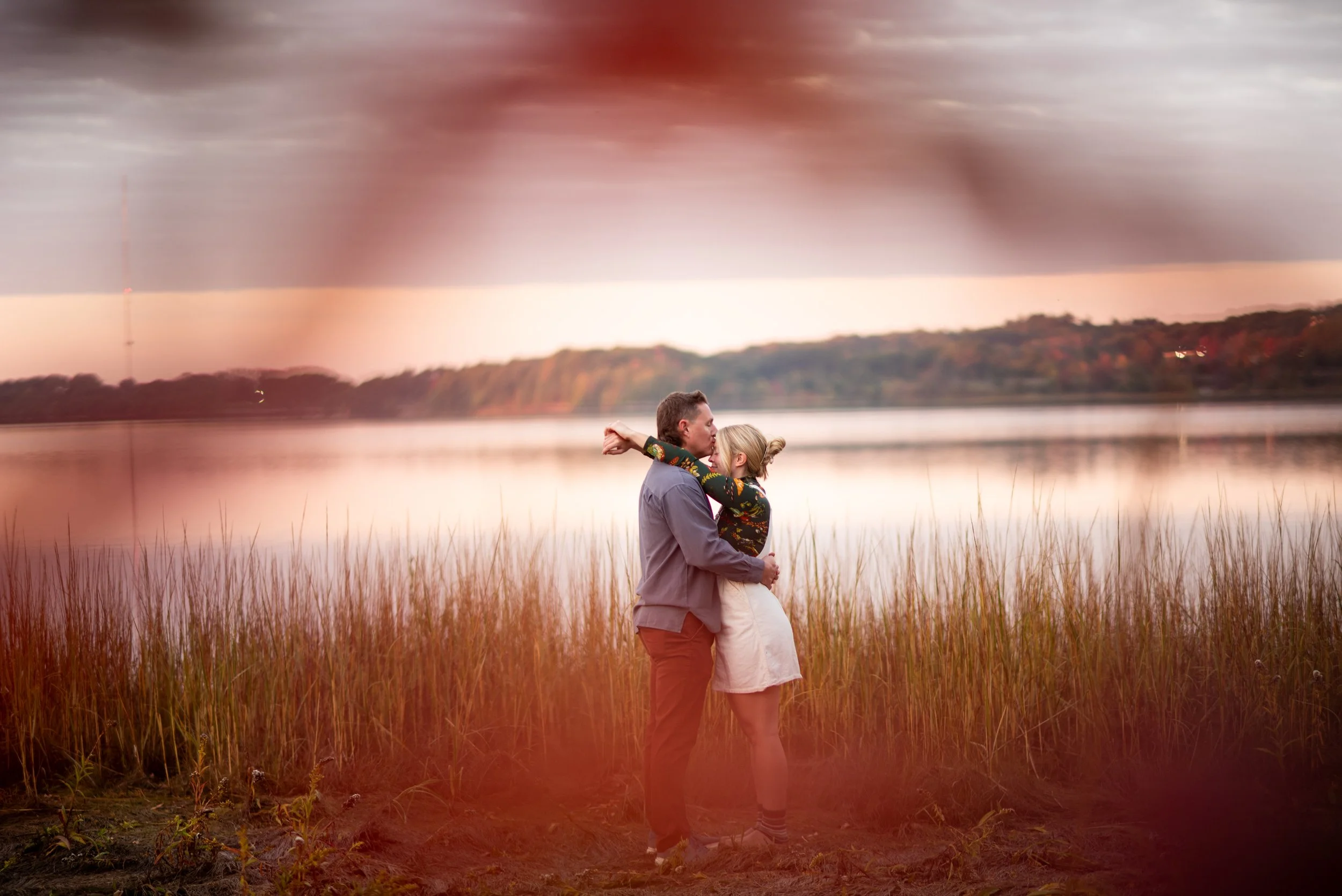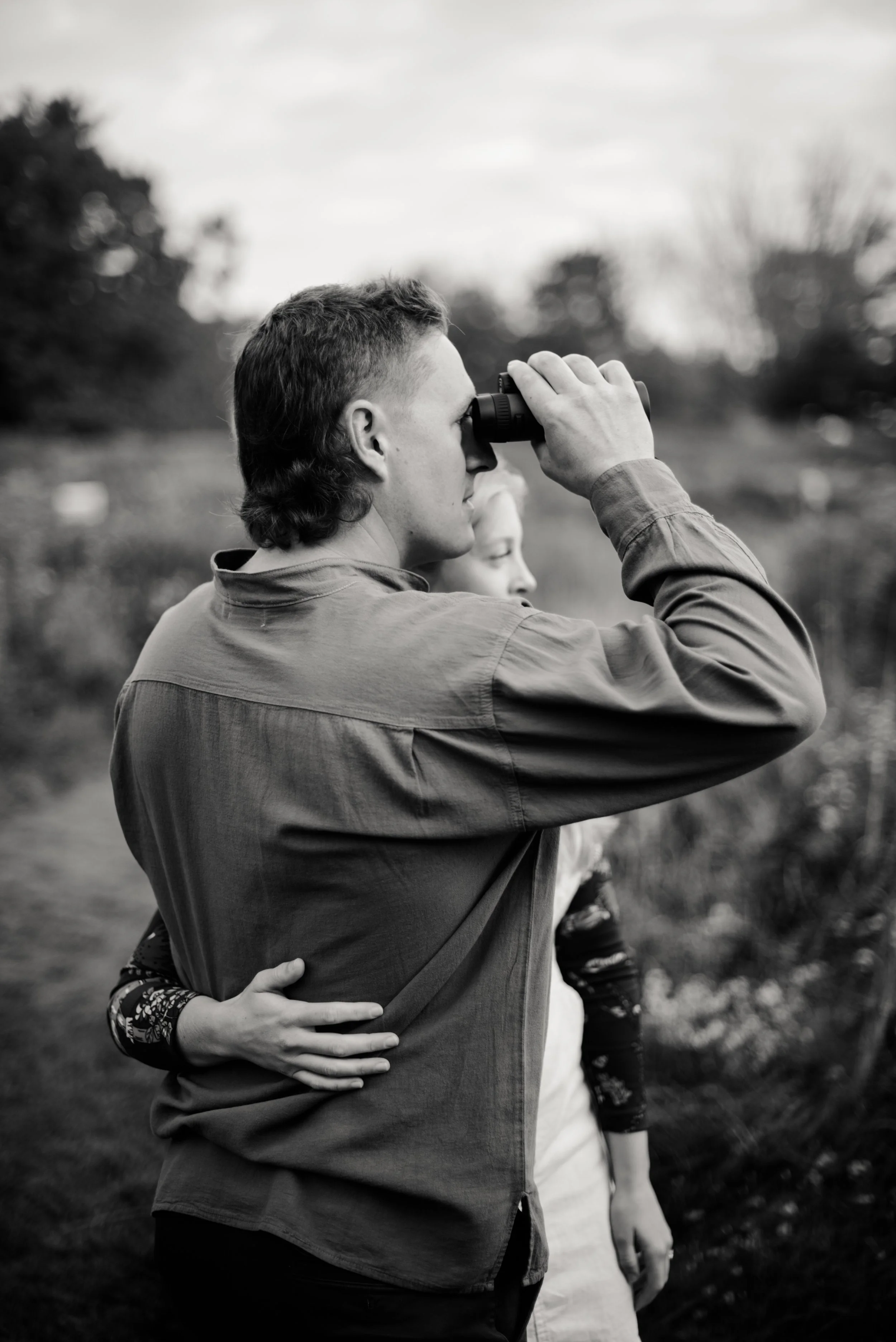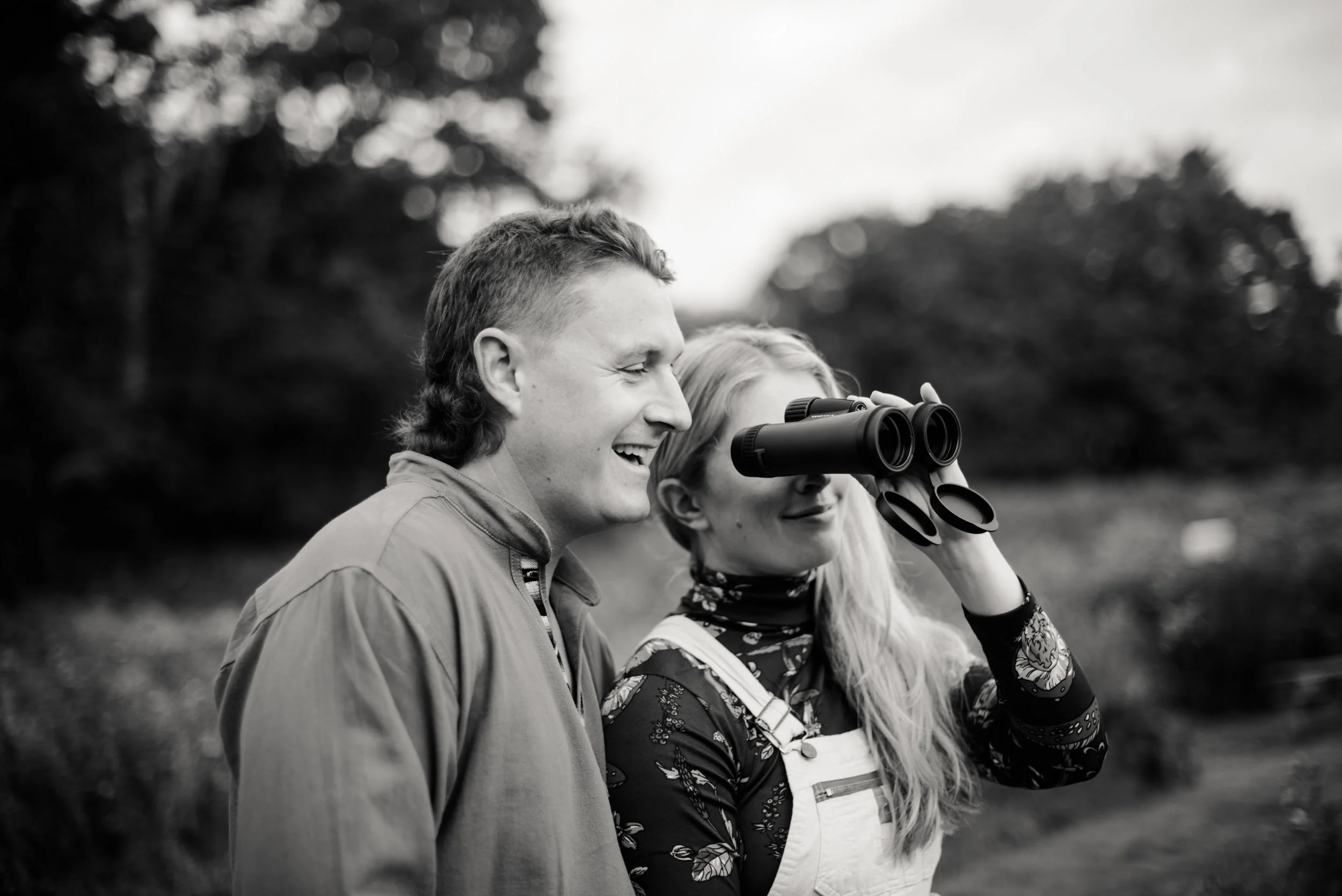 First and foremost, Mary is my oldest best friend and that made this engagement shoot special from the very start. Secondly, Mary and Sam are bold. They were dedicated to our sunrise timing for the photoshoot even though that meant meeting at 6AM on a Sunday. And, they were even willing to traipse out into the muddy, squishy marsh at the Maine Audubon at Gilsland Farm (the Audubon was a fitting start to the shoot for these avid birders). Third, they’re quirky. For the first half of the shoot, they rocked memorable tops with Mary in a mushroom print turtleneck and Sam in a notch-collar shirt. Fourth, they’re silly as heck. Some of their photo ideas included jumping together with deadpan faces, pretending to be predator and prey in a chase, pretending to spot each other in the wild. At one point when we were in downtown Portland (where the couple loves to explore), Mary unexpectedly but purposefully bit Sam’s finger and we all lost it laughing.
