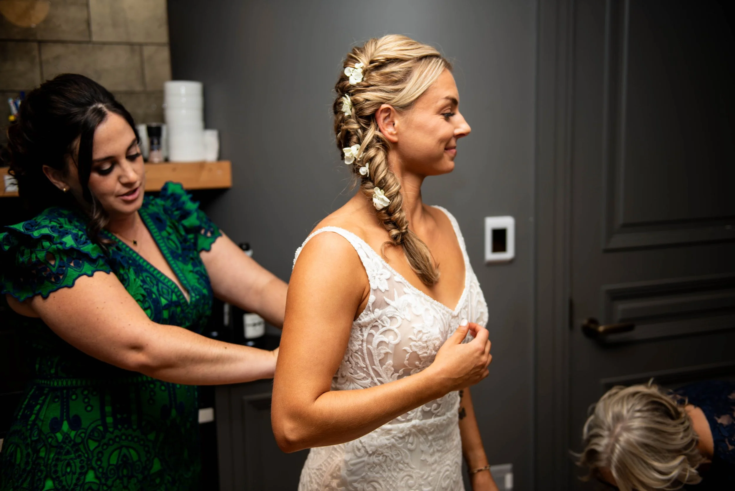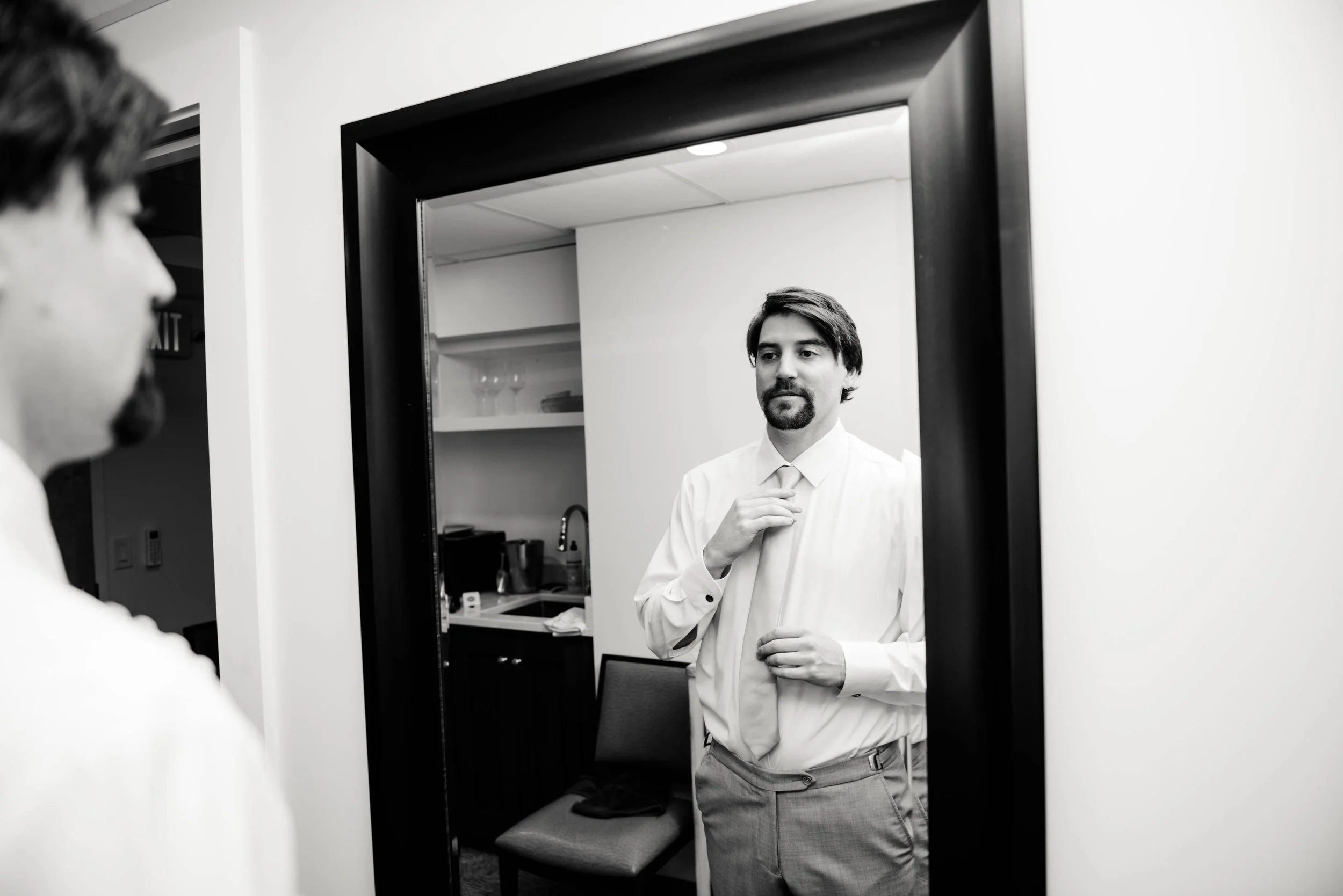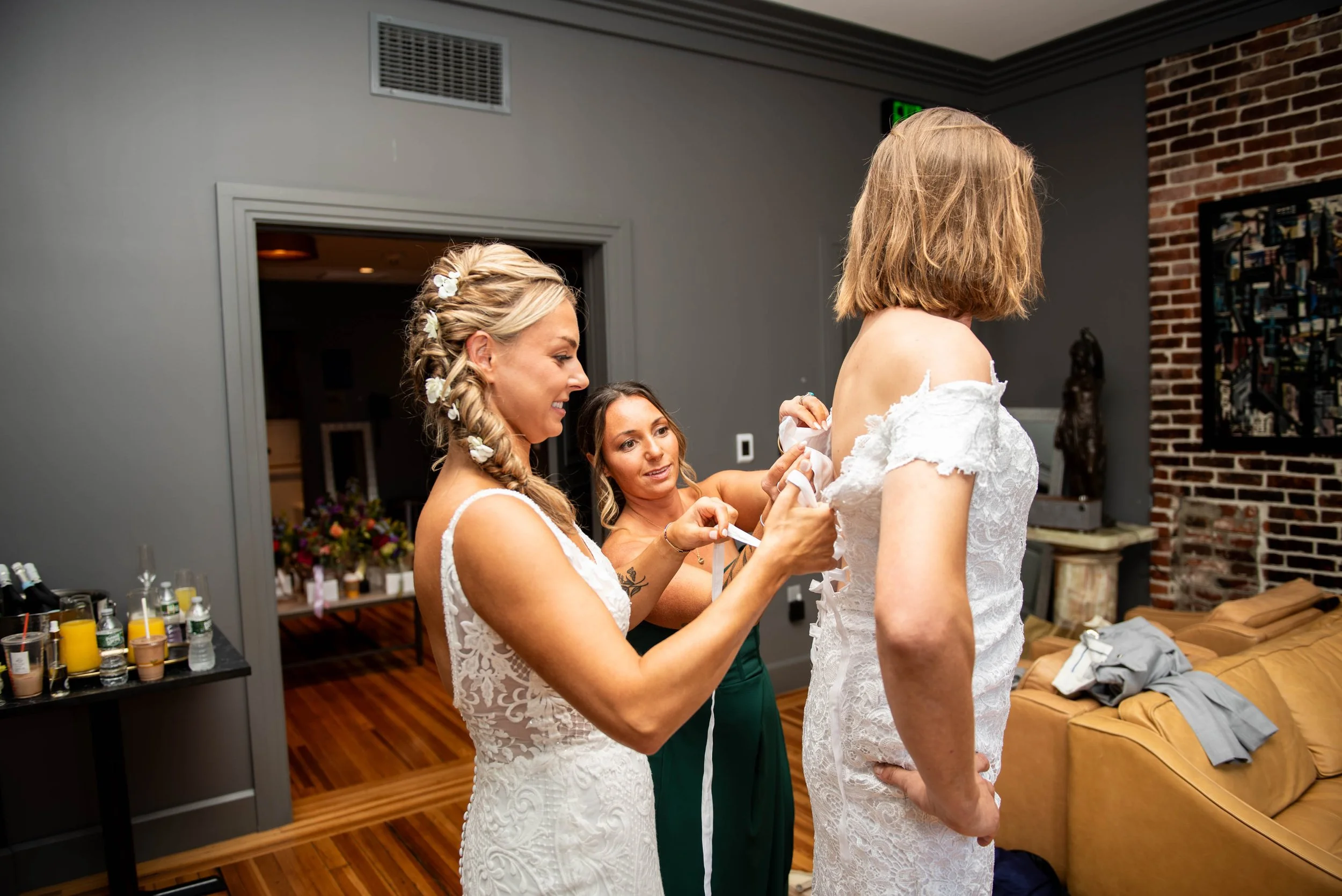 They started the day getting ready at Jimmy’s Jazz & Blues Club, with Aura Jade Beauty handling hair and makeup. Maddie was relaxed and surrounded by a crew that kept things light from the jump. Their first look took place on the roof of the club, where Tony’s best man pulled the best prank every by putting on a wedding dress and posing as Maddie when Tony first turned around. The rest of the wedding party was just dying with laughter. Finally, Maddie made her appearance for the real first look and it was so sweet. The excitement for the day just kept building!