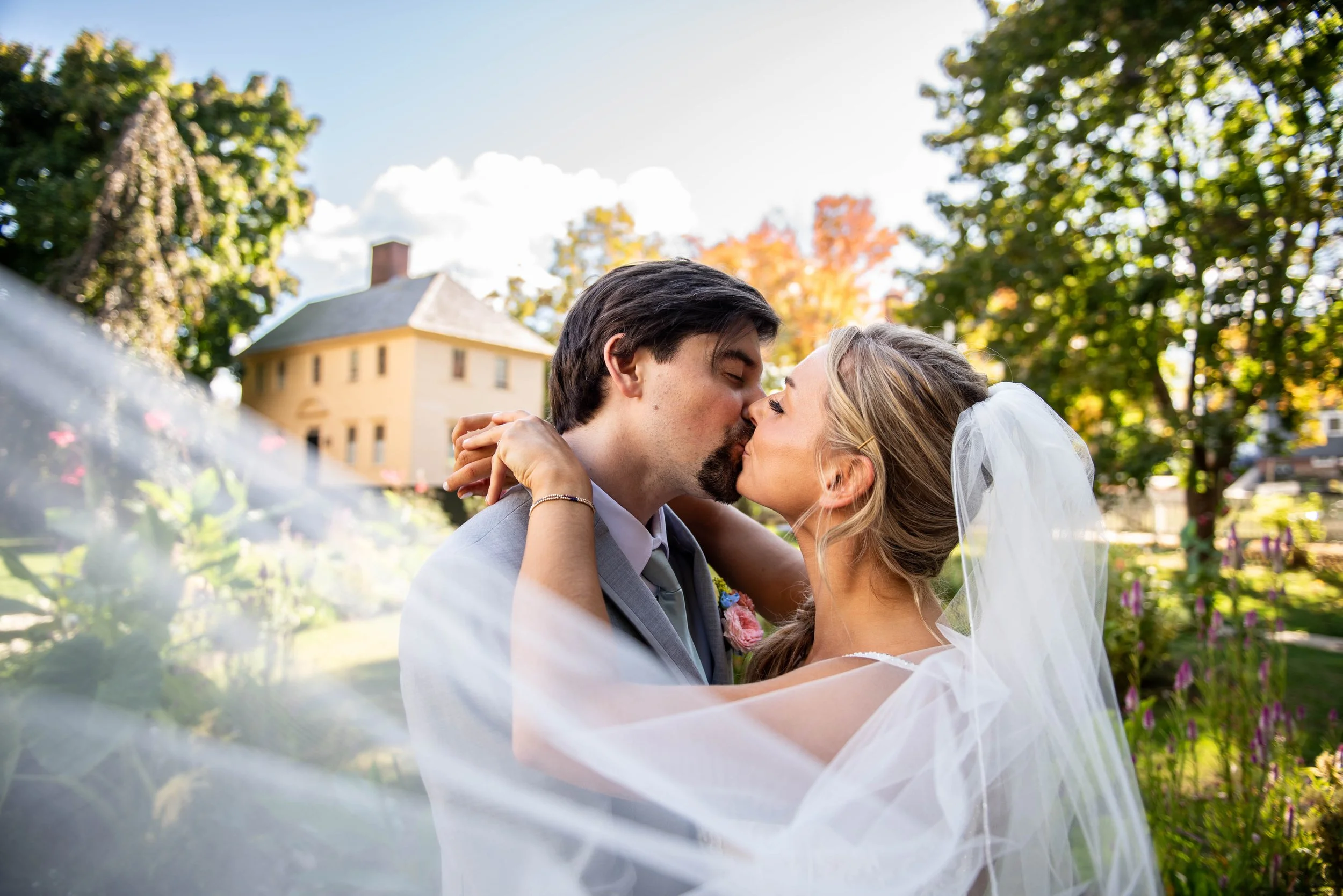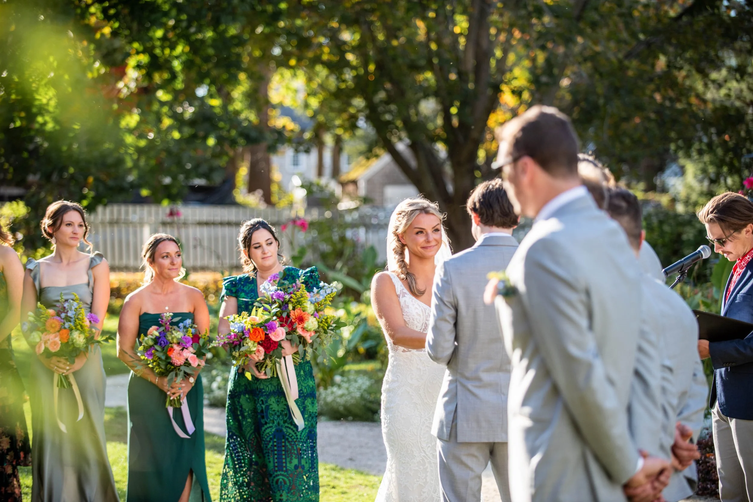 Next, we all headed to Strawbery Banke Museum, tucked among historic homes and fall leaves — a classic New England October backdrop. Family photos came first followed by the ceremony, which was short and sweet in the gorgeous museum garden. The weather was on our side, and the proceedings had a grounded, comfortable feel — no frills, just authenticity.