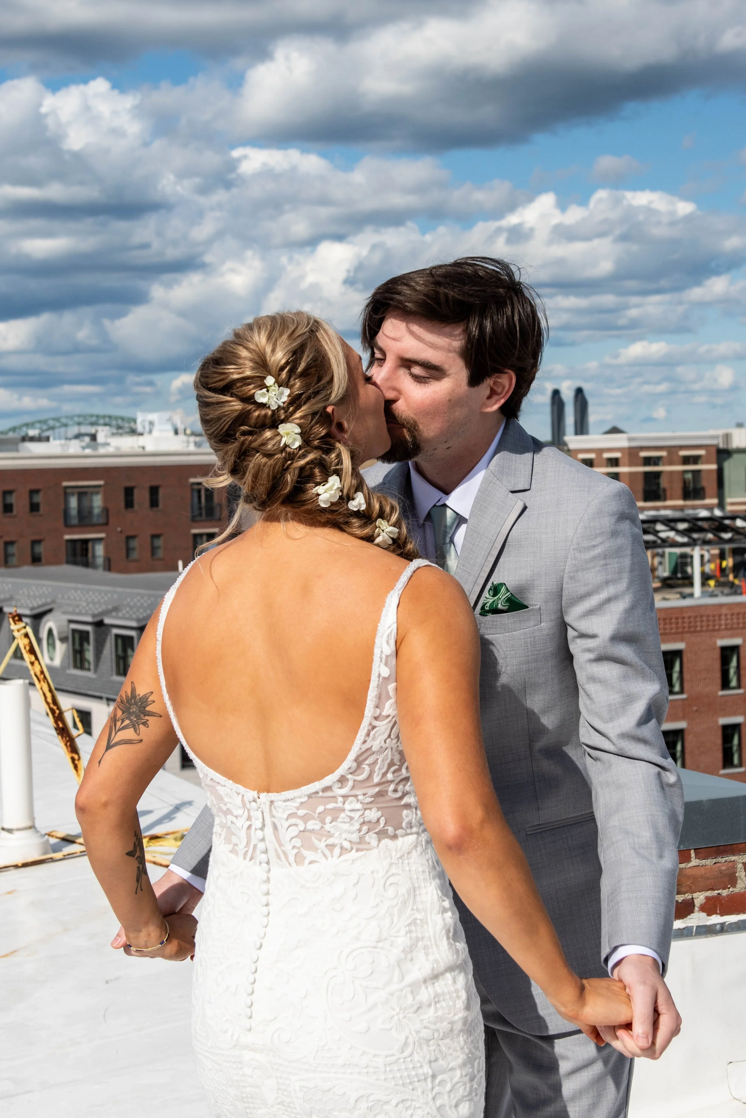 Before the reception really got going, I whisked Maddie and Tony back up to the rooftop for some sunset photos. I love this part of the wedding day - not only is the lighting absolutely scrumptious, but it’s a quiet moment of pause in the chaos to capture the beauty of two people in love looking their best.